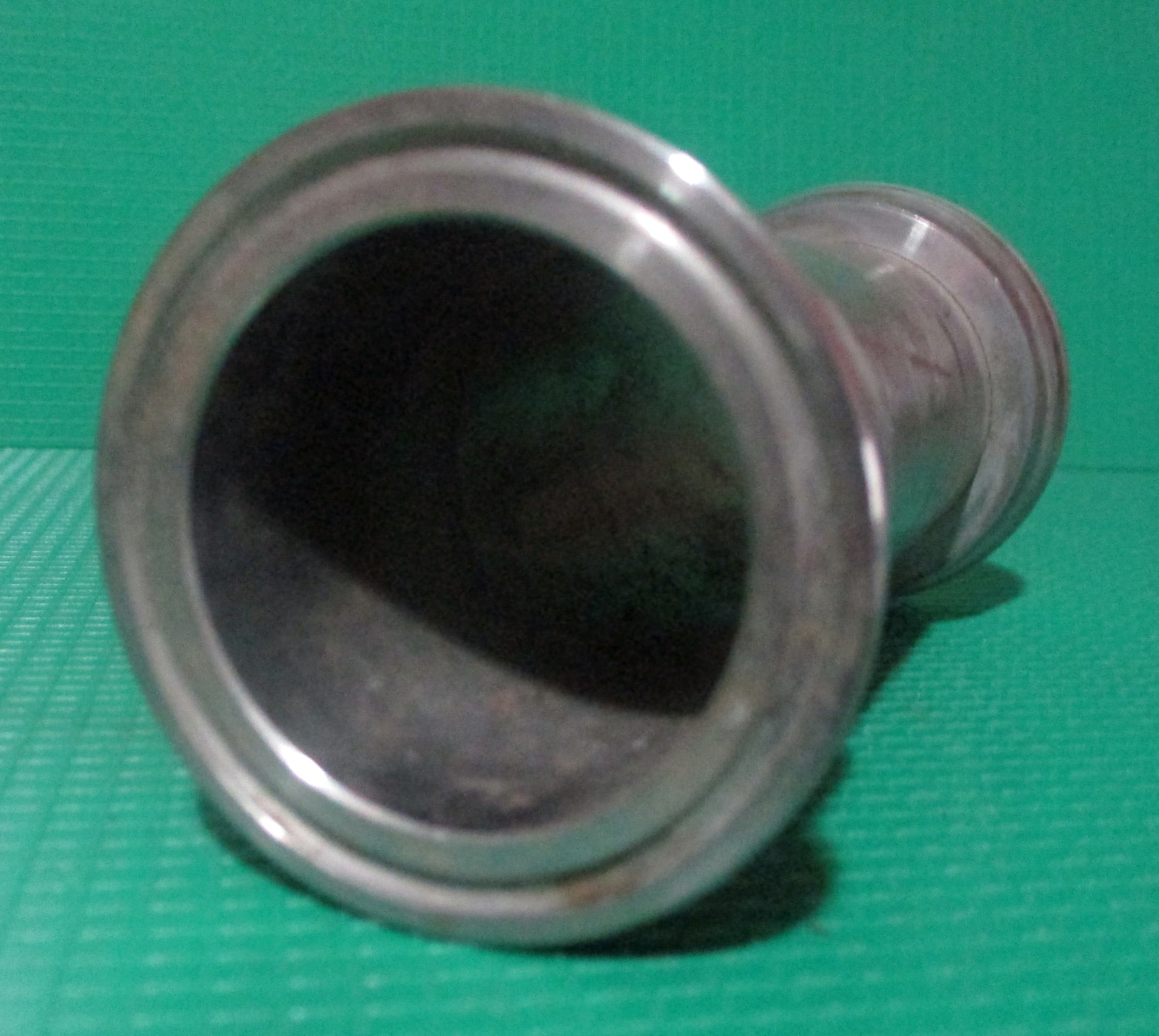 5″ long. The glass ferrule has an outer diameter of 2 1/8″, and an inner diameter of 1 7/16″. The roll-on Tri-Clover ferrule has an outer diameter of 2″, and an inner diameter of 1 7/16″.
