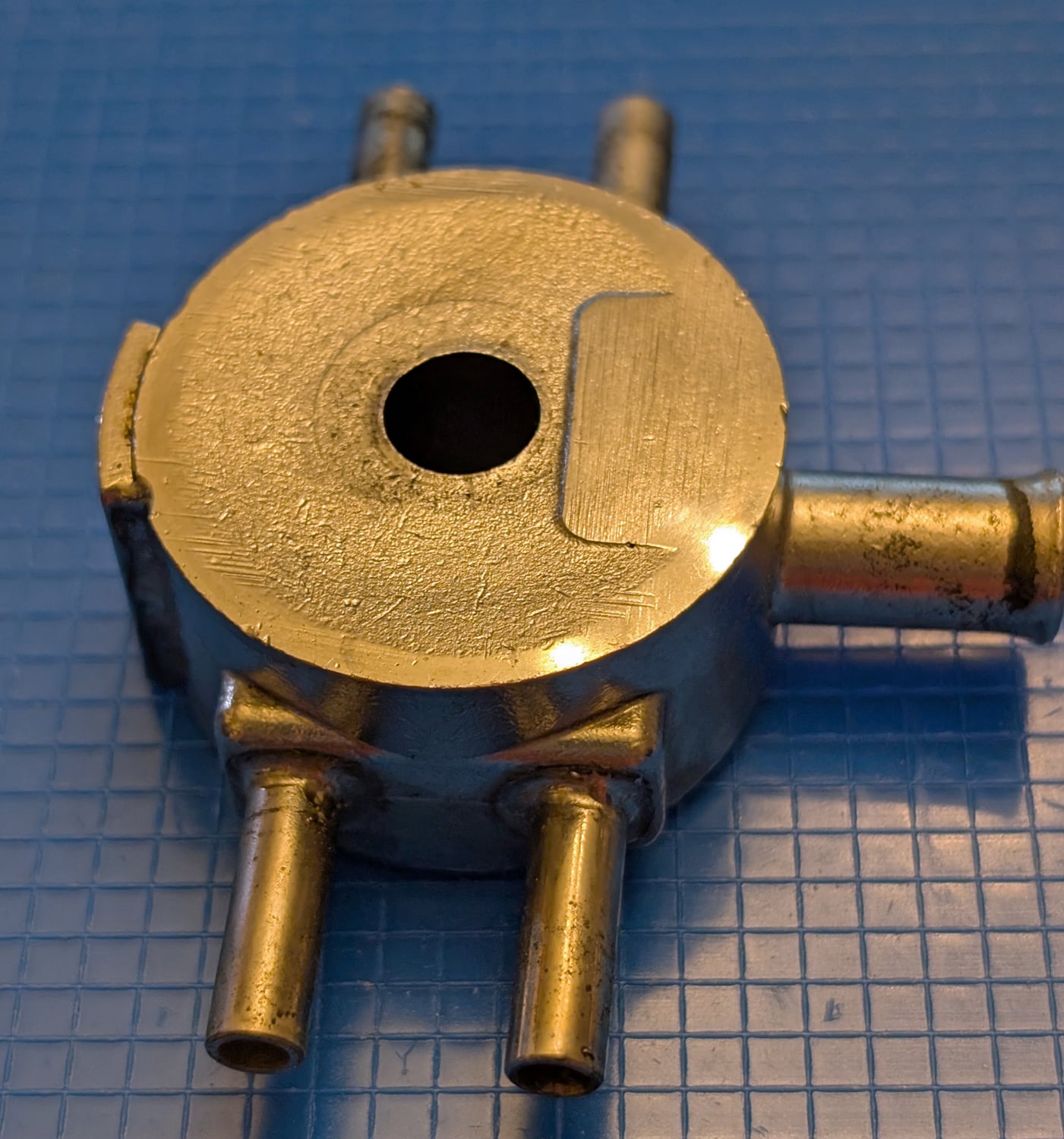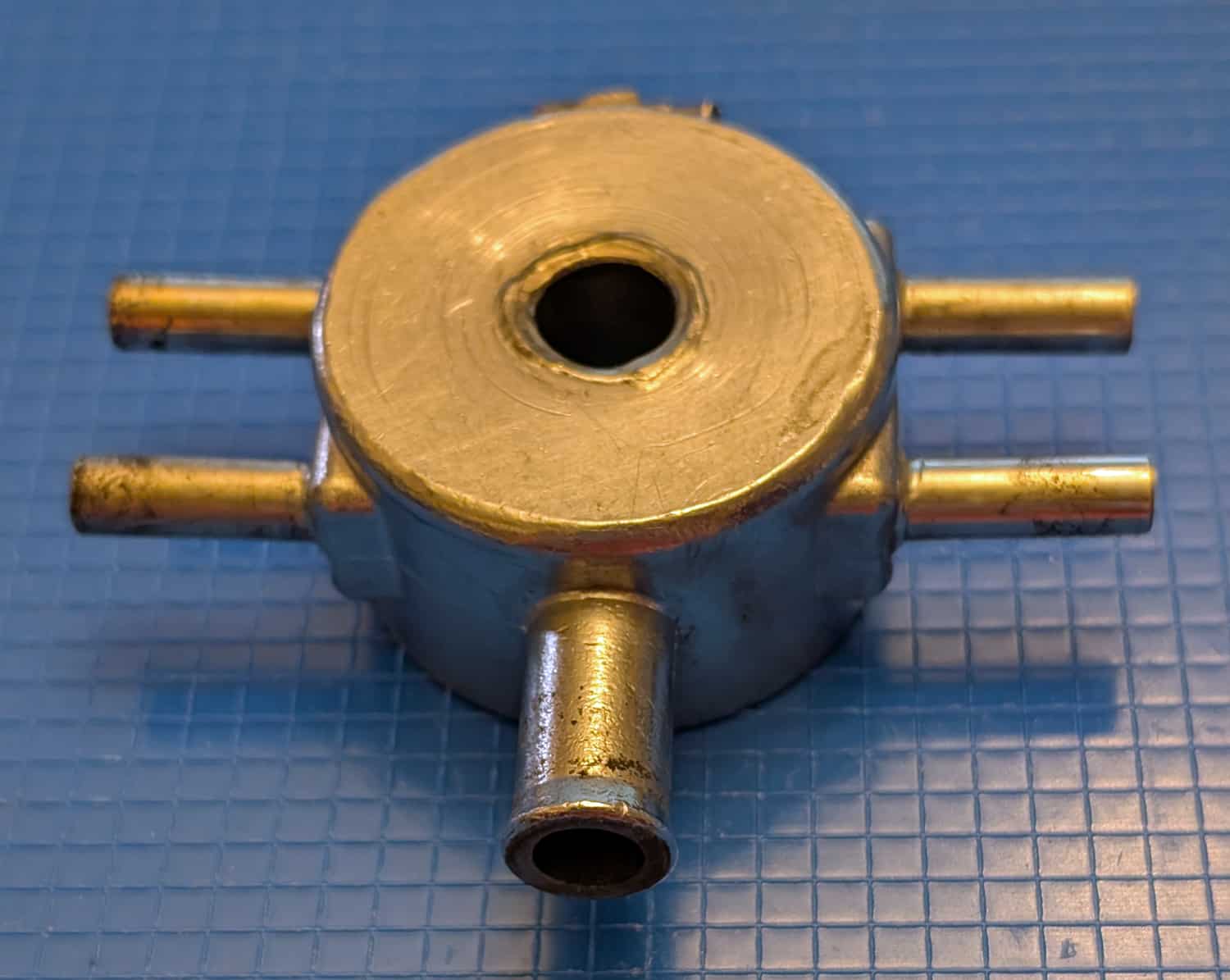 USED This stainless steel single air divider with a missing broken-off hook measures: