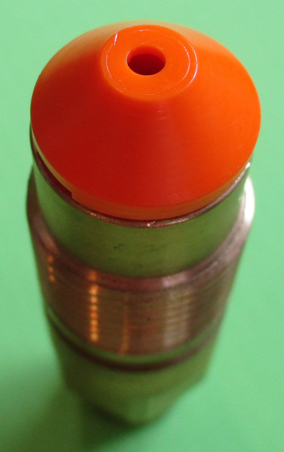 The plastic cap is 7/16″ high with an 11/16″ outside diameter that decreases to a 1/4″ outside diameter with a 3/32″ inside diameter.