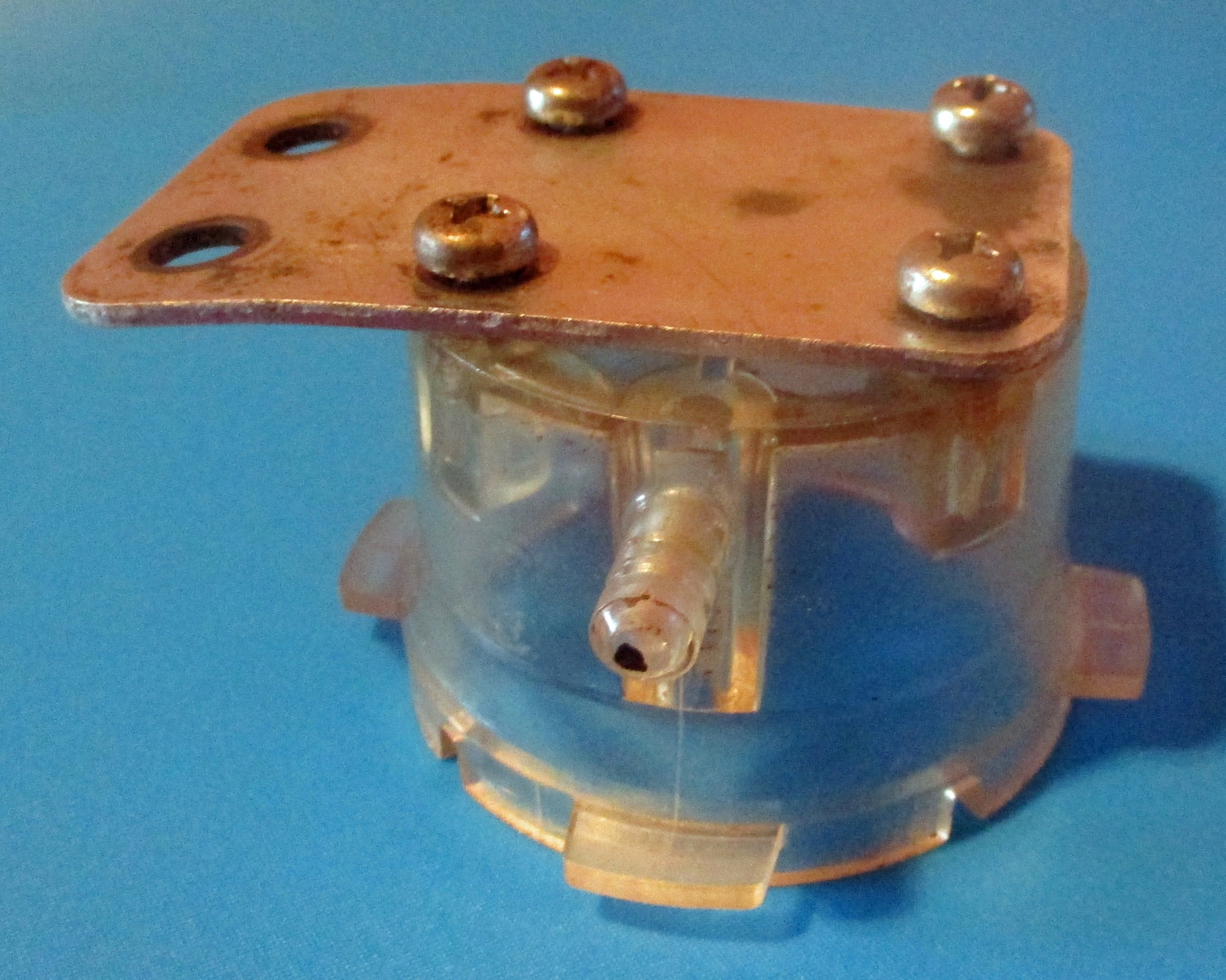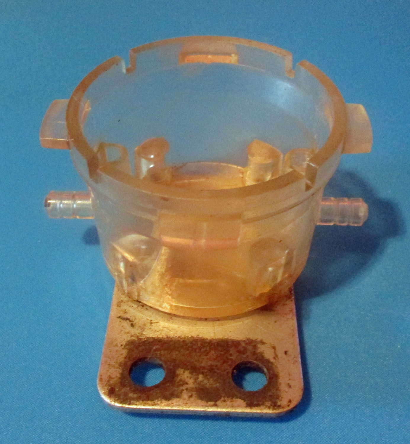 USED This plastic and metal, oiler base with a plate, but no wick measures: