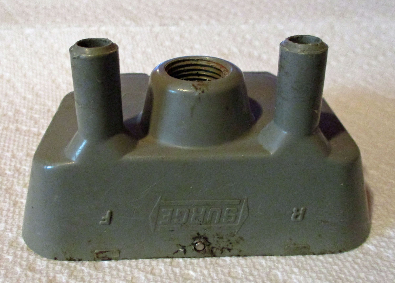 USED This plastic and stainless steel permanent dual permanent mount pulsator base measures 3 15/16″ long by 2 9/16″ wide by 2 1/8″ high overall.