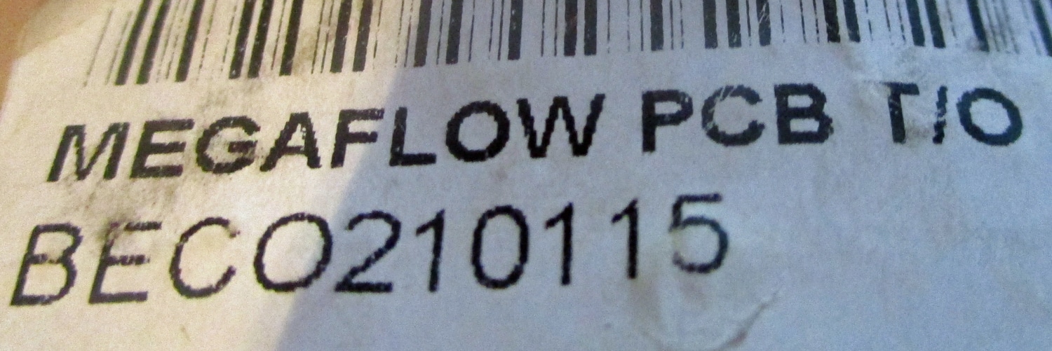 USED This metal, plastic, and wire Mega Flow printed circuit board measures: