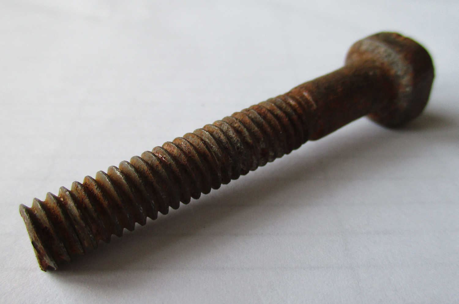 USED This unique square-headed metal bolt is 2 1/4″L with a 5/16-18 thread size. The head is 1/2″ by 1/2″ square. The manufacturer and part number are unknown.