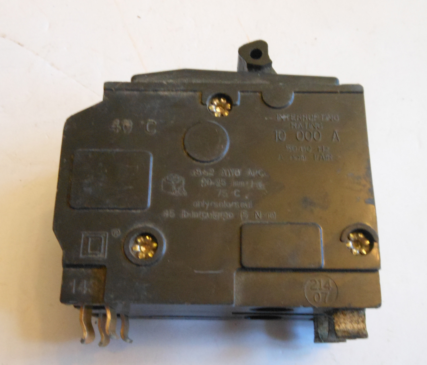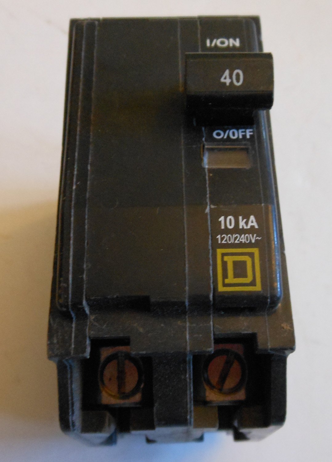 NEW This plastic and metal Square D 40 ampere breaker measures 3 1/8″ by 3 1/4″ by 1 1/2″. The specifications are as follows: