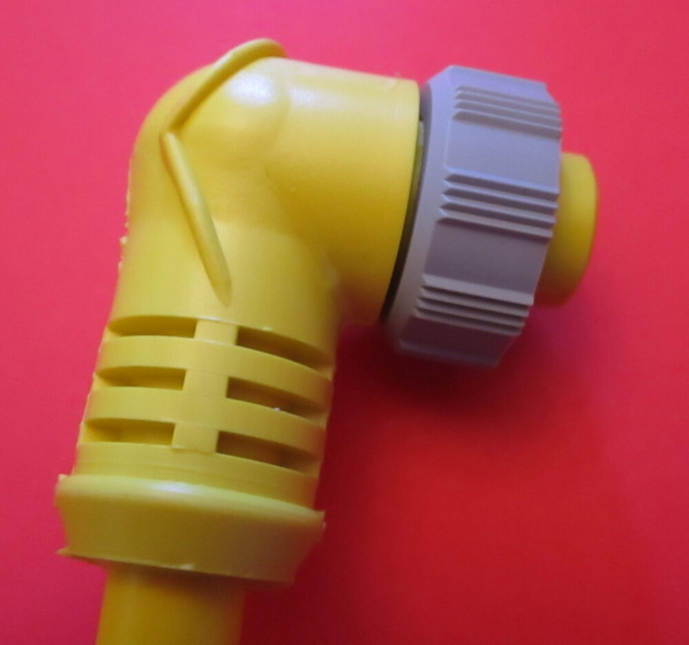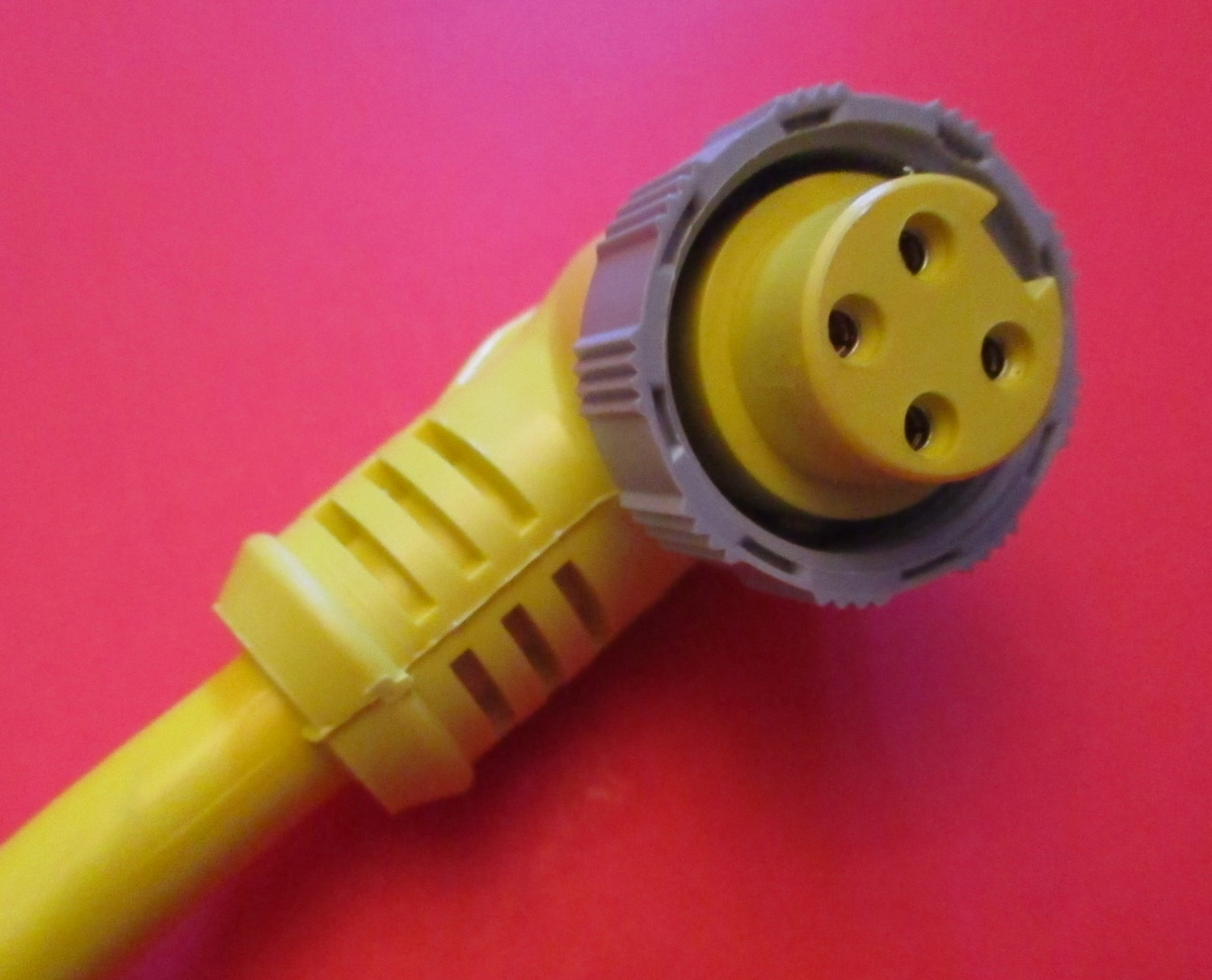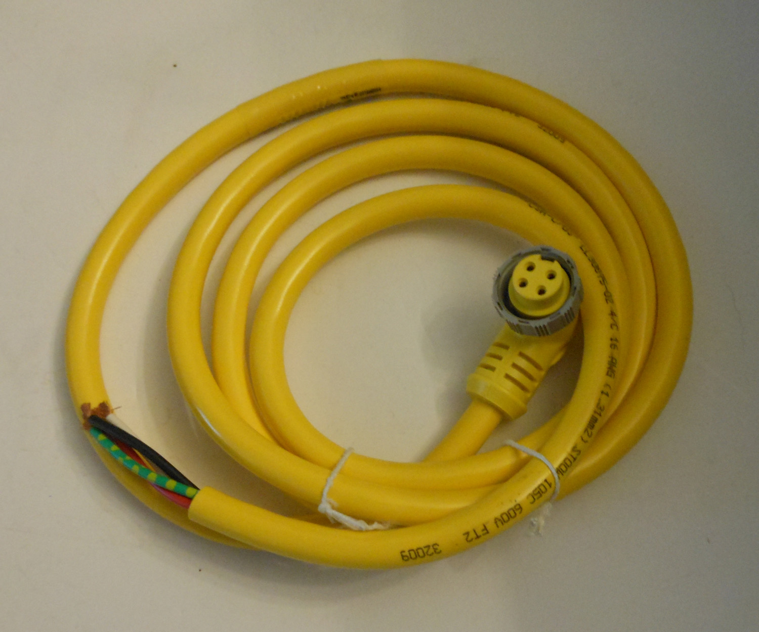 NEW This is a new six-foot-long cable with a 90° quick connect. The outer diameter of the cable is 1/2″. It contains four color-coded plastic coated copper wires with a 4-pin female 90° plug.