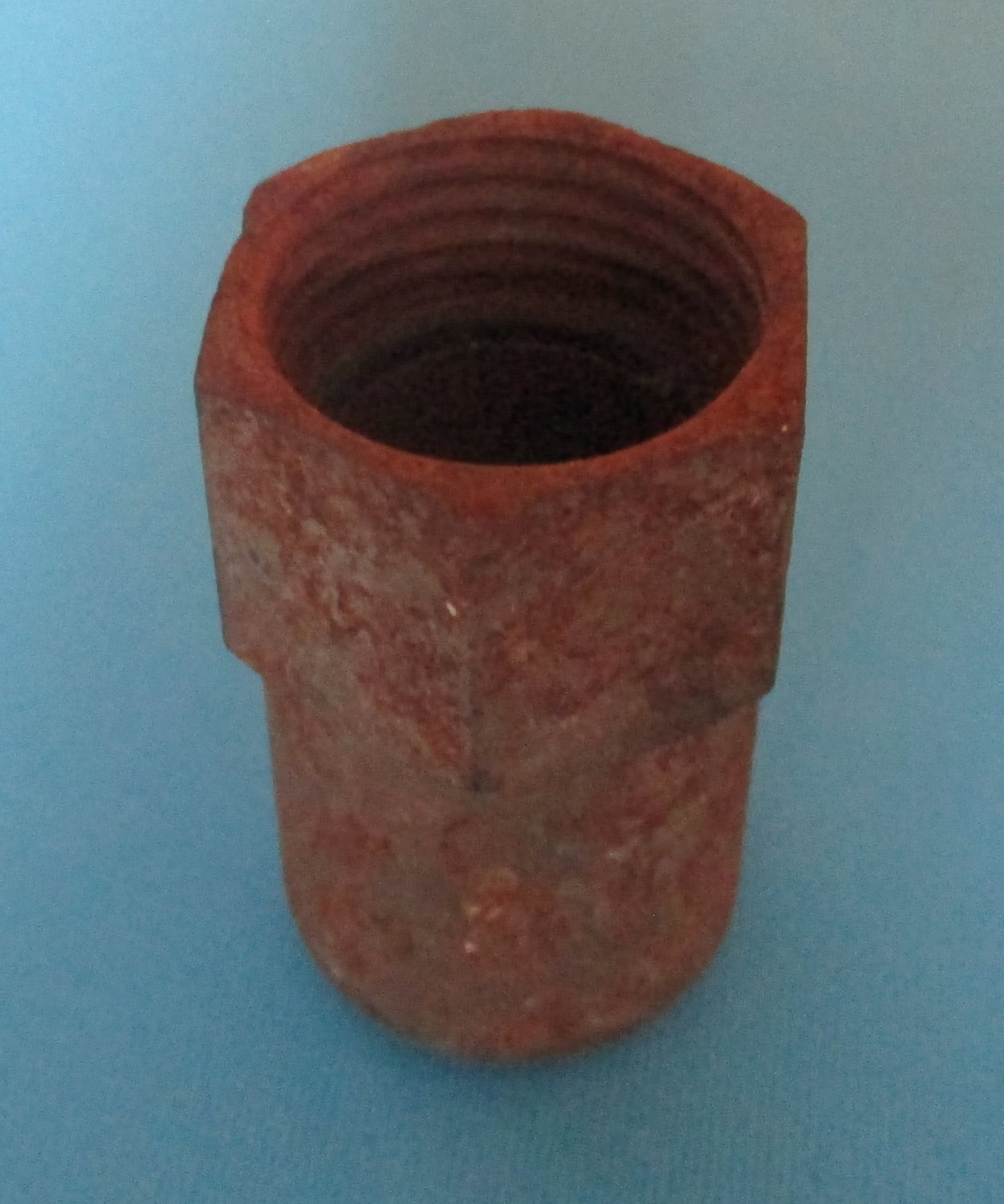 USED This cap for valve is made of metal. It is 1 7/16″ tall, 13/16″ wide and has a depth of 1 5/16″. The inside diameter of the threads are 11/16″. The manufacturer and part number is unknown.