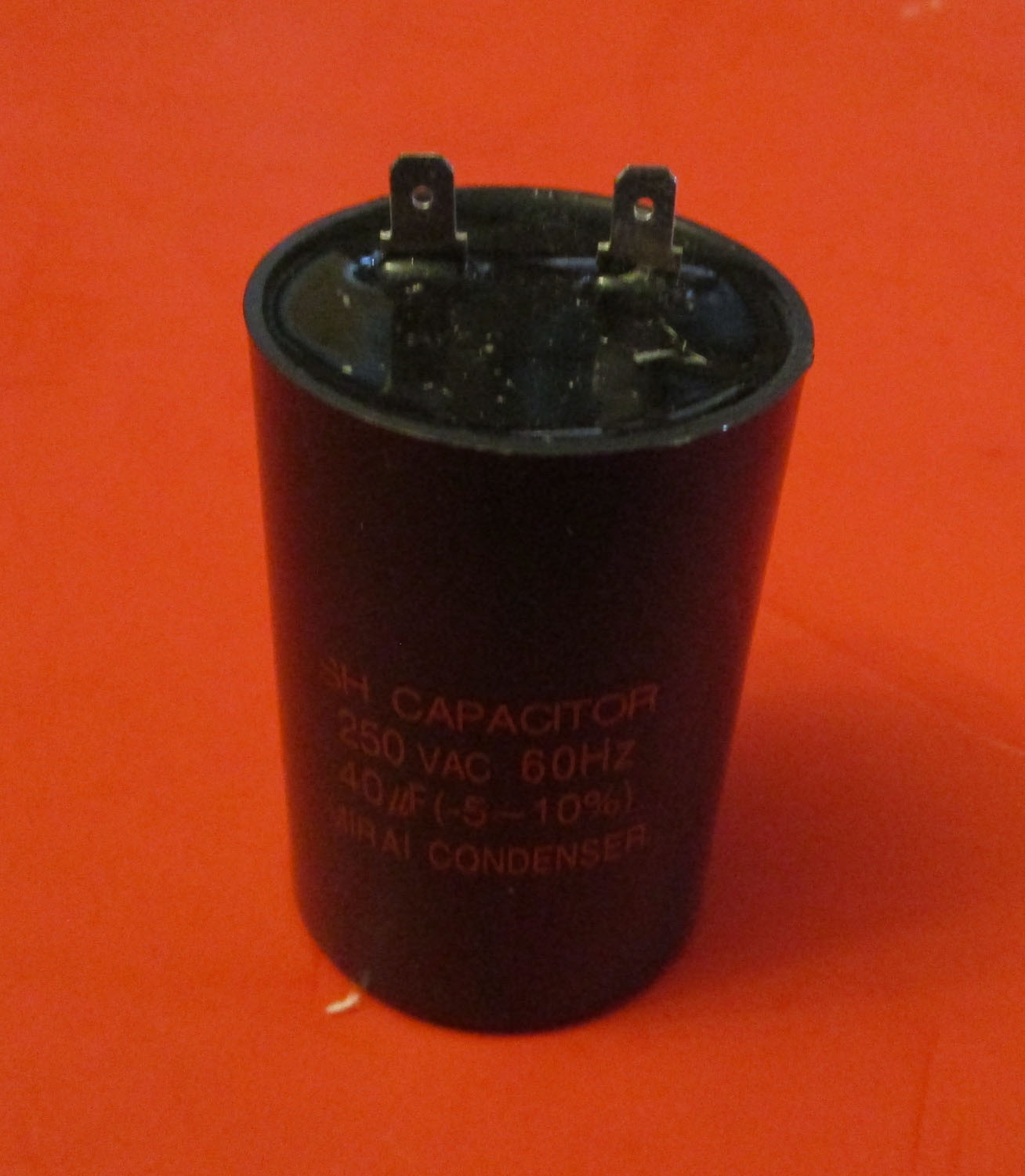 NEW This run capacitor is made of metal and plastic. It measures 2 1/2″ tall with the prongs. The prongs are 1/4″ long. The outer diameter is 1 1/2″. The indicated specifications are: