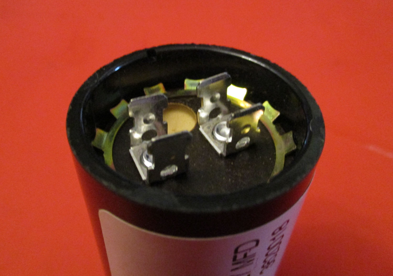 NEW This metal and plastic start capacitor measures, 2 11/16″ tall, with an outer diameter of 3/8″. The prongs are 5/16″ long. The indicated specifications are: