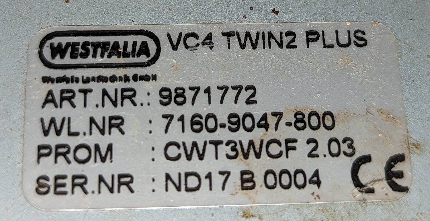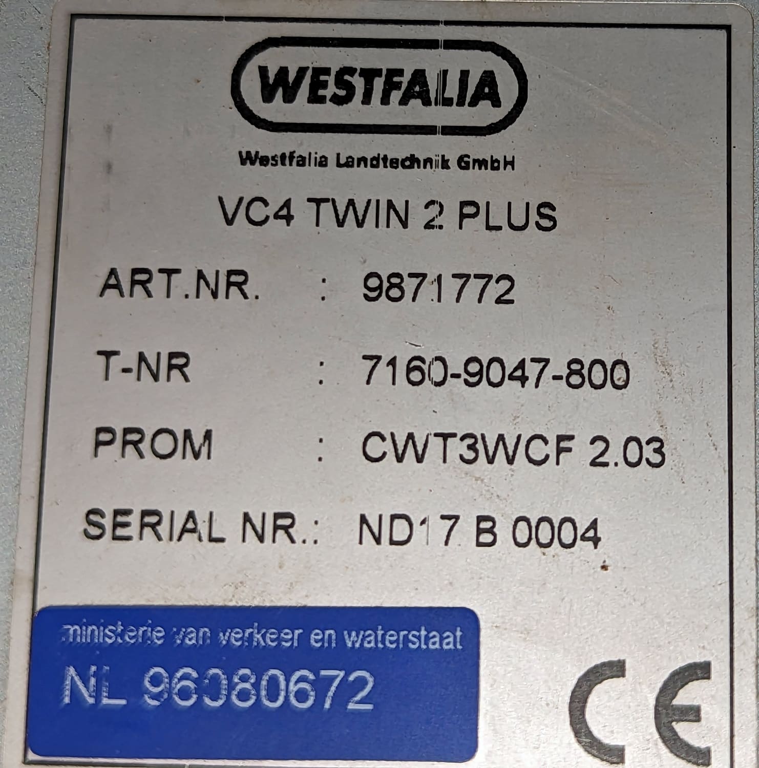 USED This plastic and metal VC4 Twin 2 Plus transceiver card is used to ID Westfalia/Surge 4 digit curved neck ID tags. The card is mounted with the walk through antenna. The piece measures: