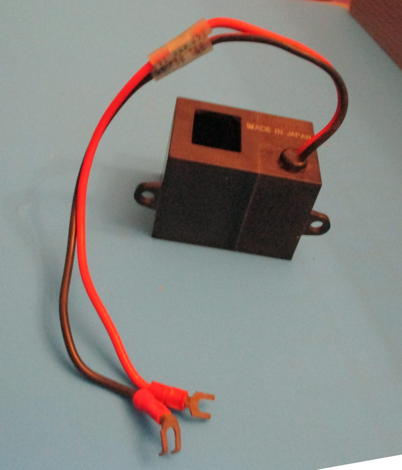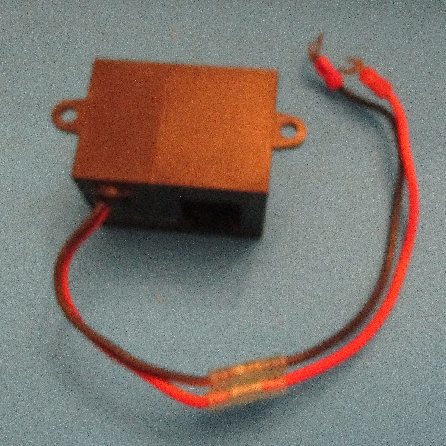 USED This is a Hard Black Plastic Battery Box. The Battery Box is 1 5/8″ wide by 2 3/16″ high by 1 5/8″ long. The screw holes are 3/16″ in diameter and are 2 1/2″ on center. The battery opening section measures 1 3/8″ wide by 1 1/16″ high by 1 1/2″ deep. The plastic coated copper wire leads are 9″ long.