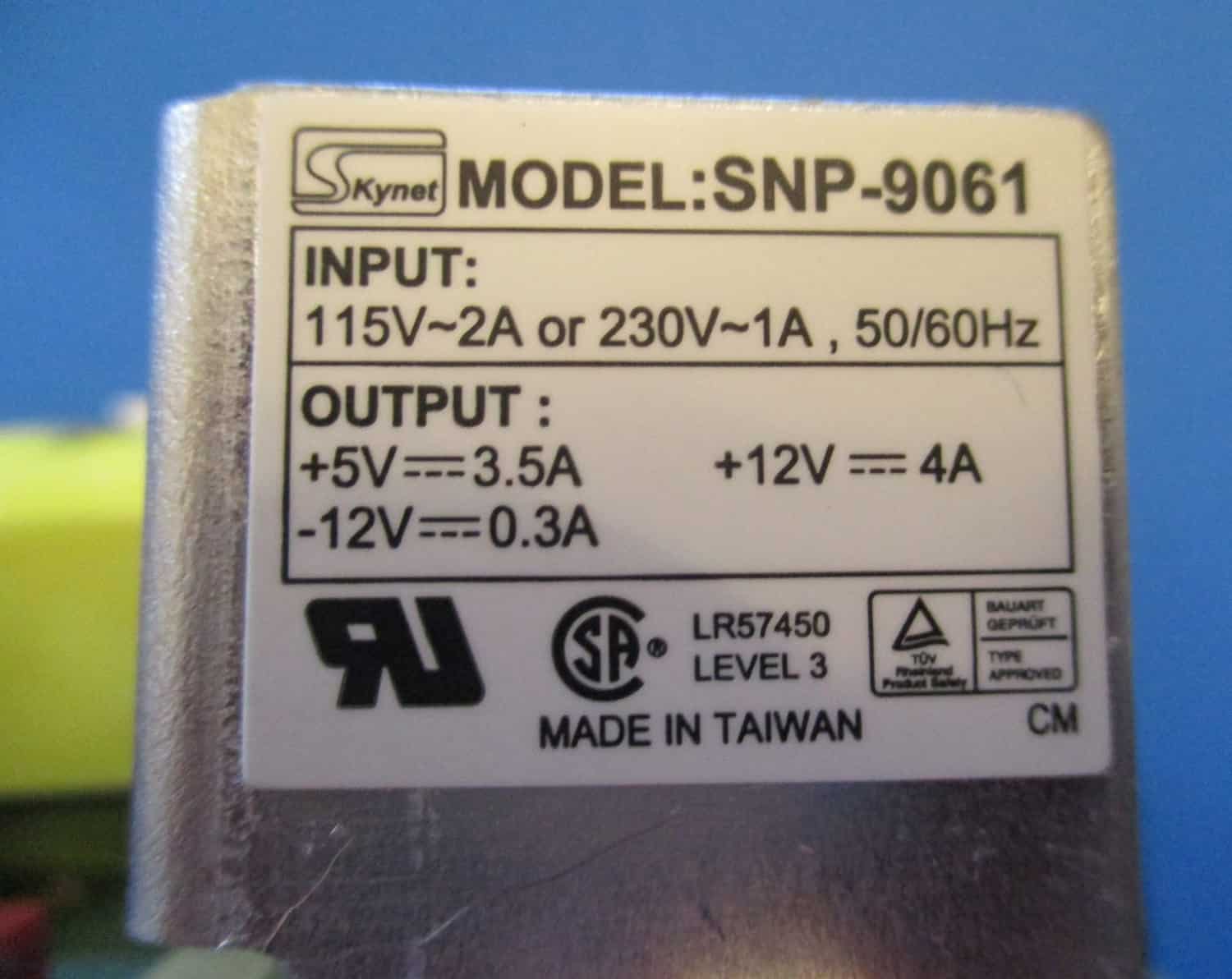 Output: +5 volts at 3.5 amperes   -12 volts at 0.3 amperes   +12 volts at 4 amperes