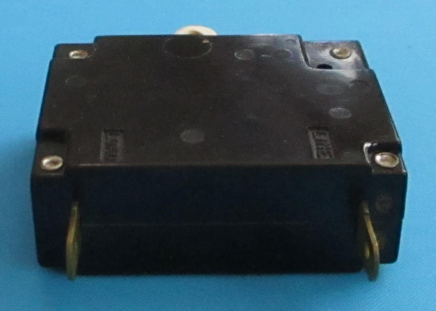 NEW  This plastic and metal circuit protector switch is sold by Potter & Brumfield. It is 2″ long, 3/4″ wide, and 2 1/2″ high. The specifications are: