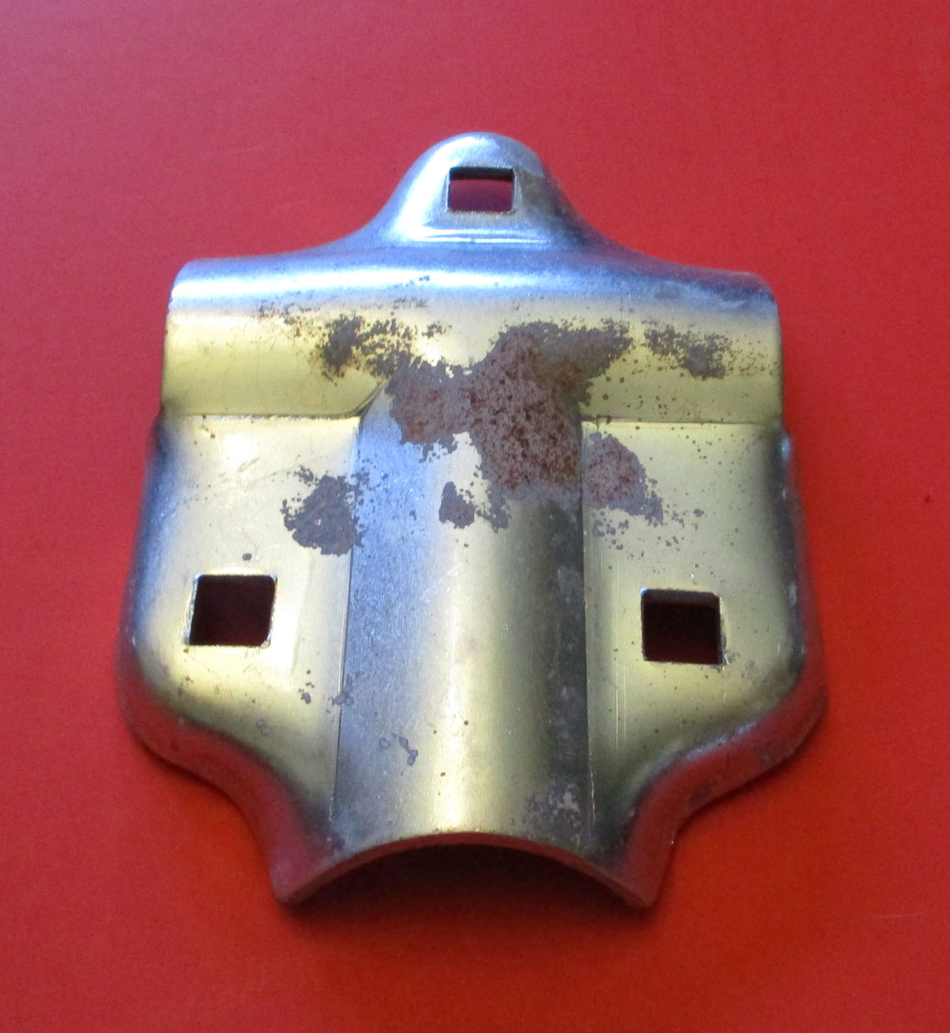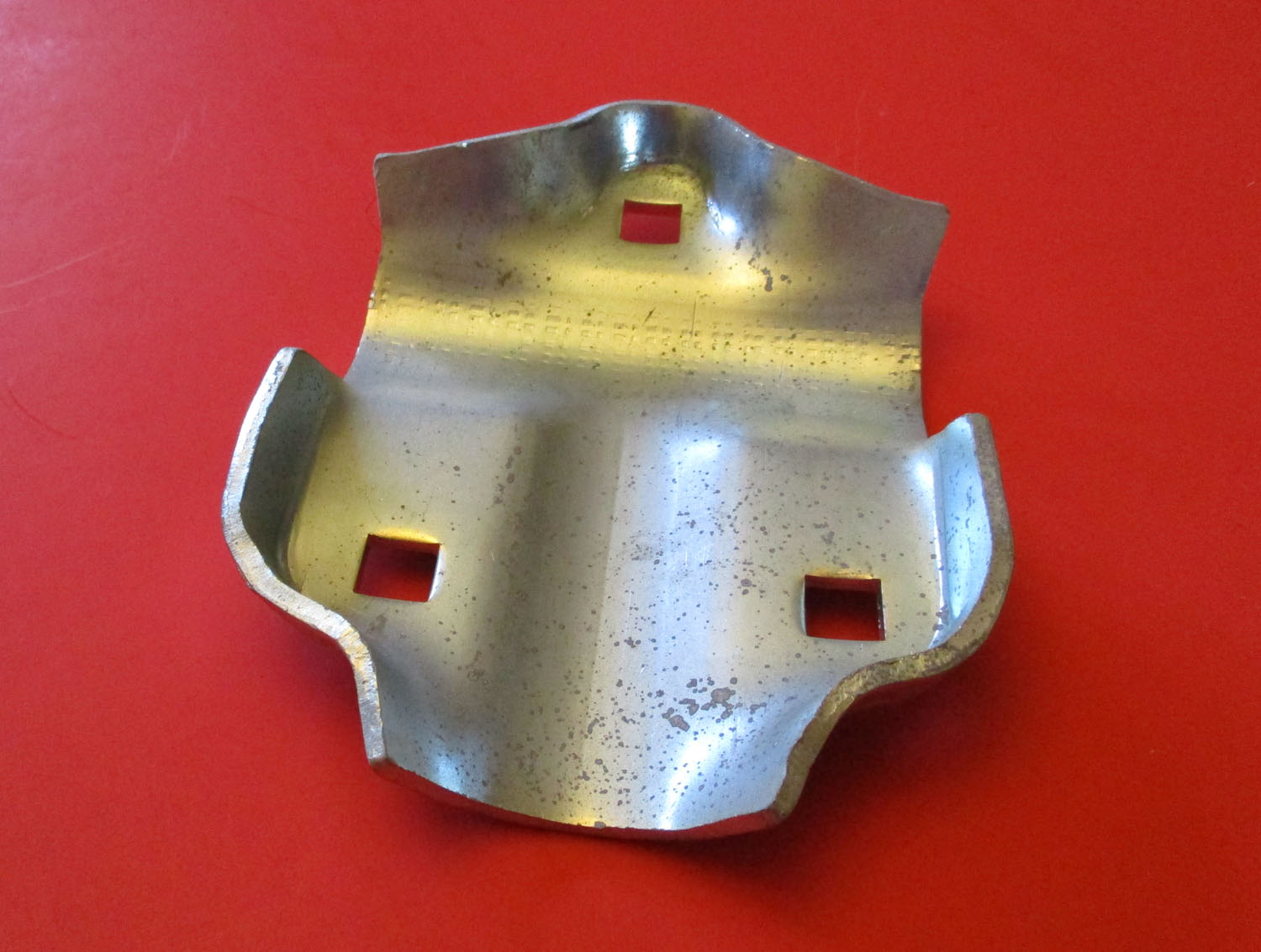 USED This metal, half T clamp measures 5″ long by 3 3/4″ wide by 7/8″ thick. It is for a 1 5/8″ by 1 5/8″ pipe. The Schlueter manufacturer number is 44368.