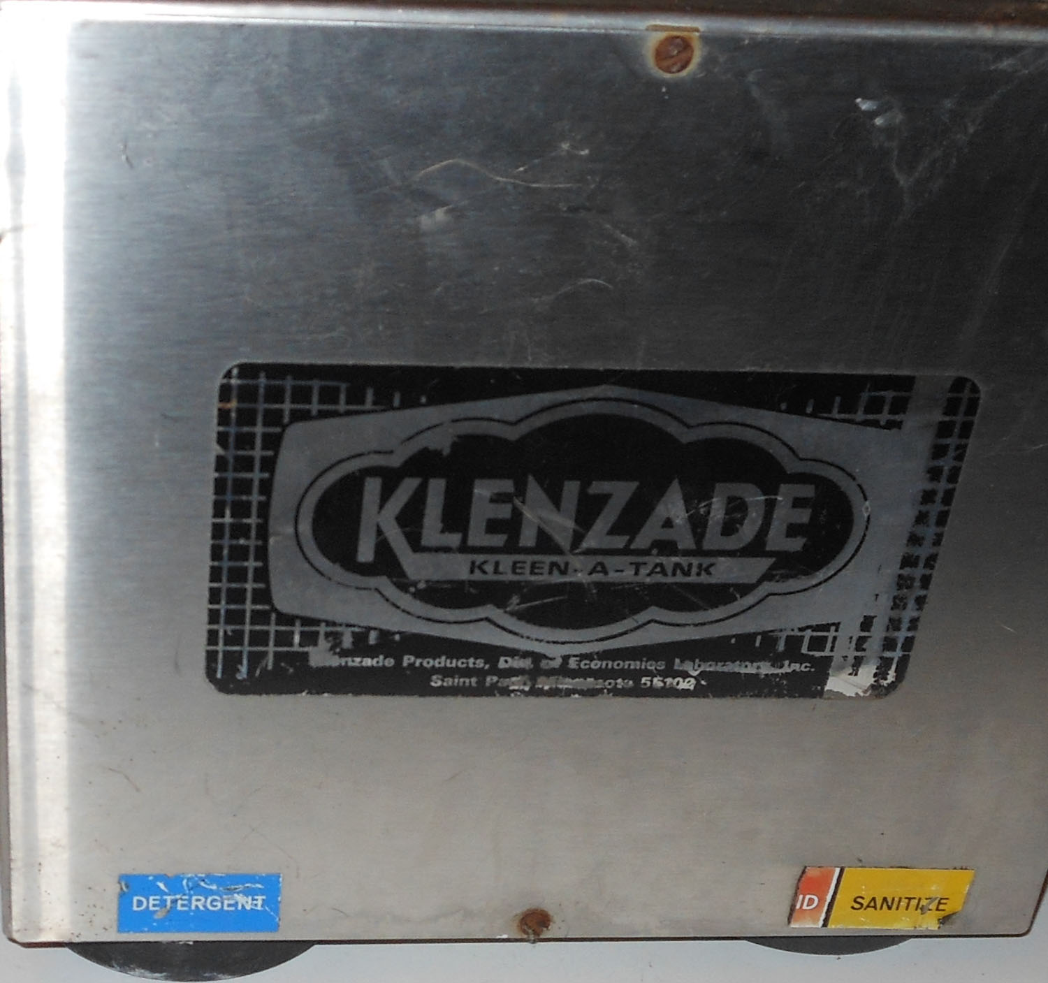 USED This Klenzade tank cleaner, model KT-1700, measures: for the box, 10″ by 9″ by 6″, the metal drain, 3/4″ for the outer diameter with an inner diameter of 3/8″, the detergent and sanitizer holes, 3 1/2″ for the outer diameter with an inner diameter of 2 5/8″, 1/2-13 thread size for the cold water hole, the hot water hole is 1″ for the outer diameter with an inner diameter of 3/16″. it operates at 115 volts, 10 amperes. Disconnect 115 volts line before removing lid. Maximum water temperature -180°. The Klenzade manufacturer number is unknown.