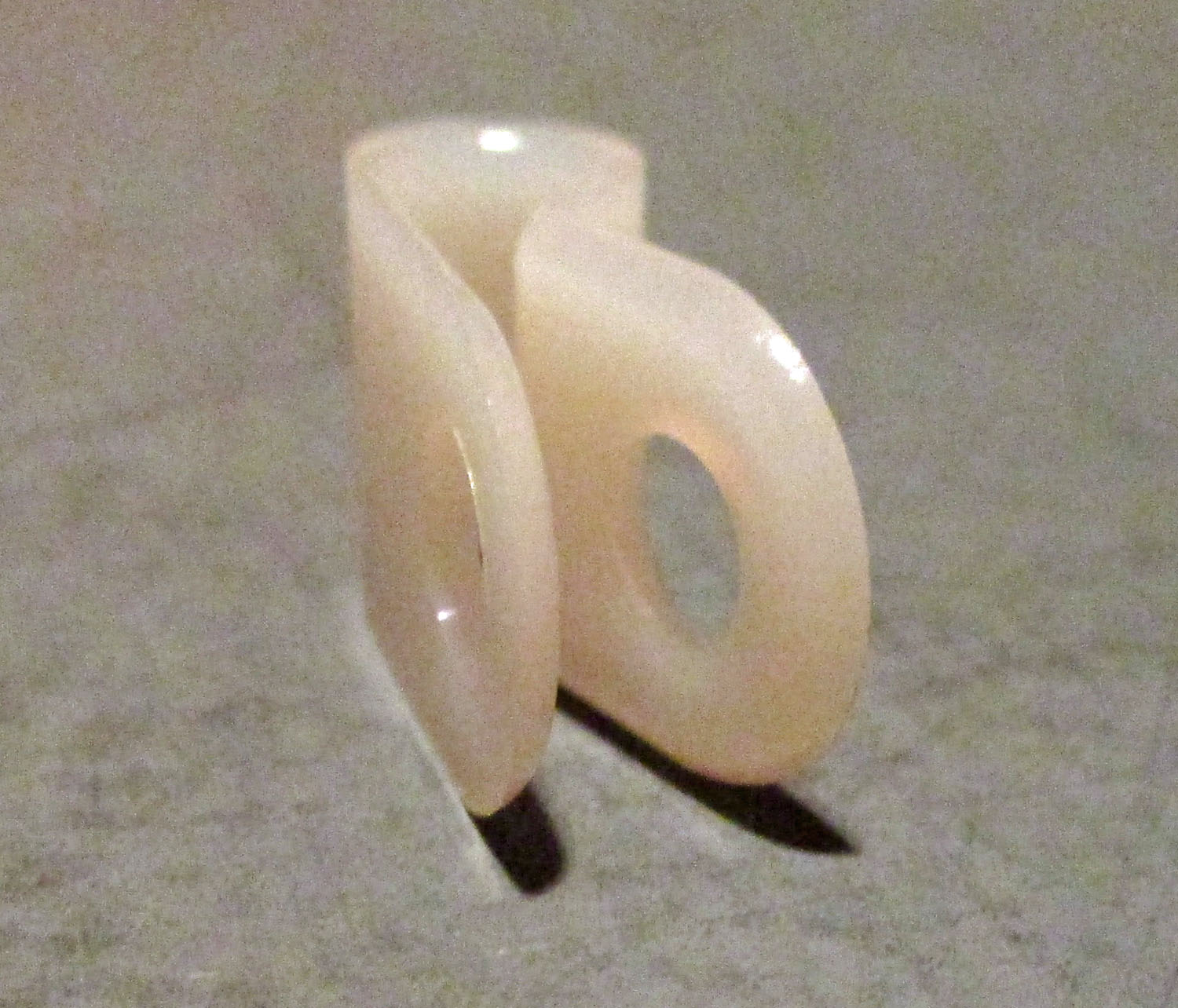 NEW This plastic clamp has a 3/16″ cable clamping diameter. It measures, 3/4″ long by 1/2″ wide by 5/16″ high. The holes have an inner diameter of 1/4″. The manufacturer and part number are unknown.
