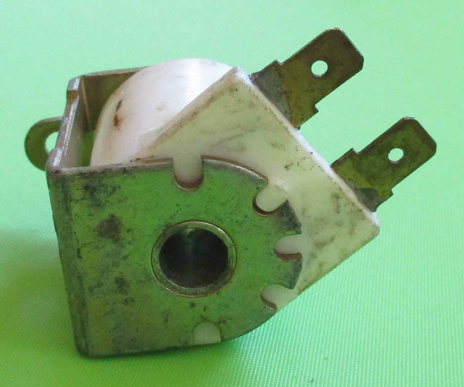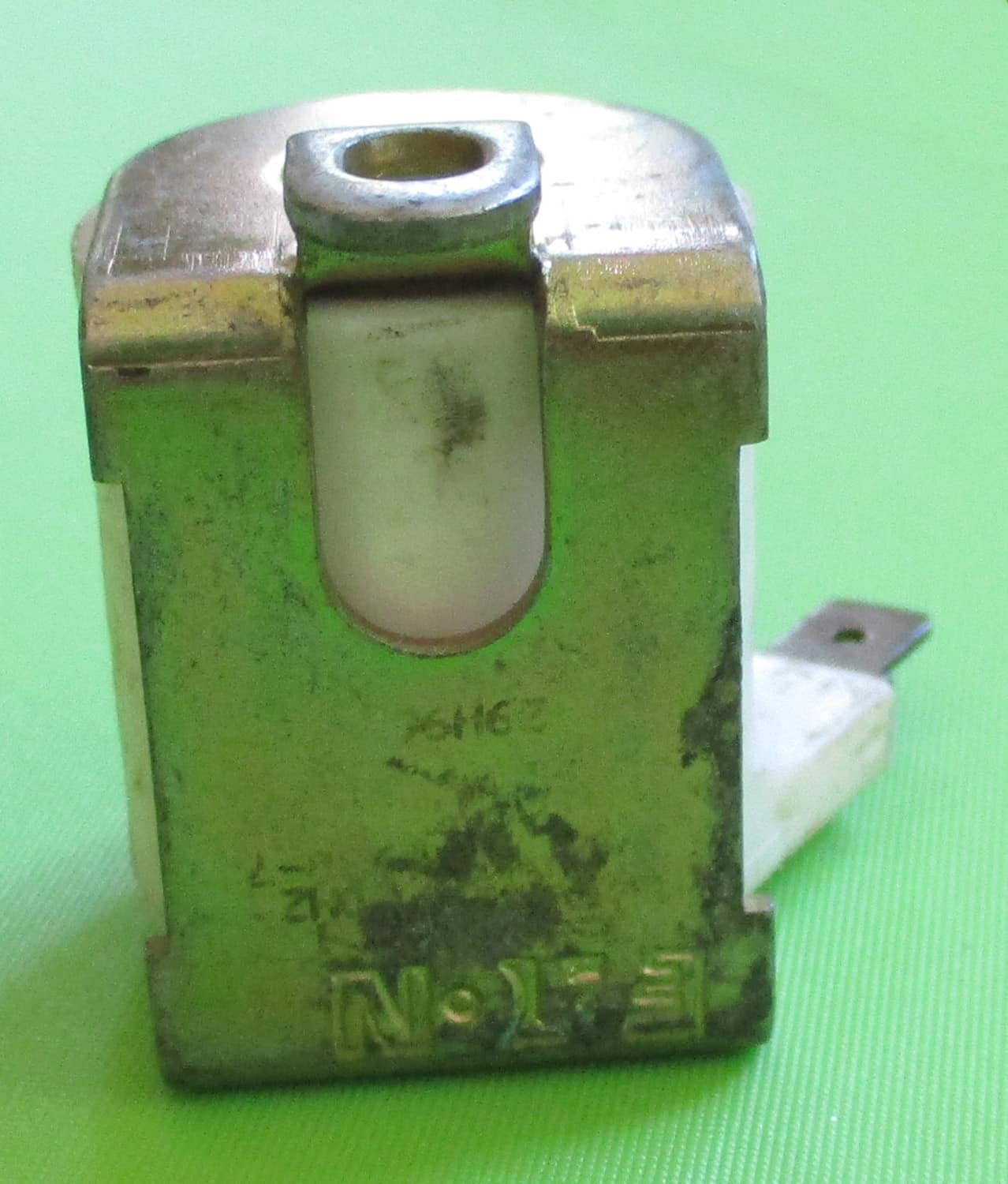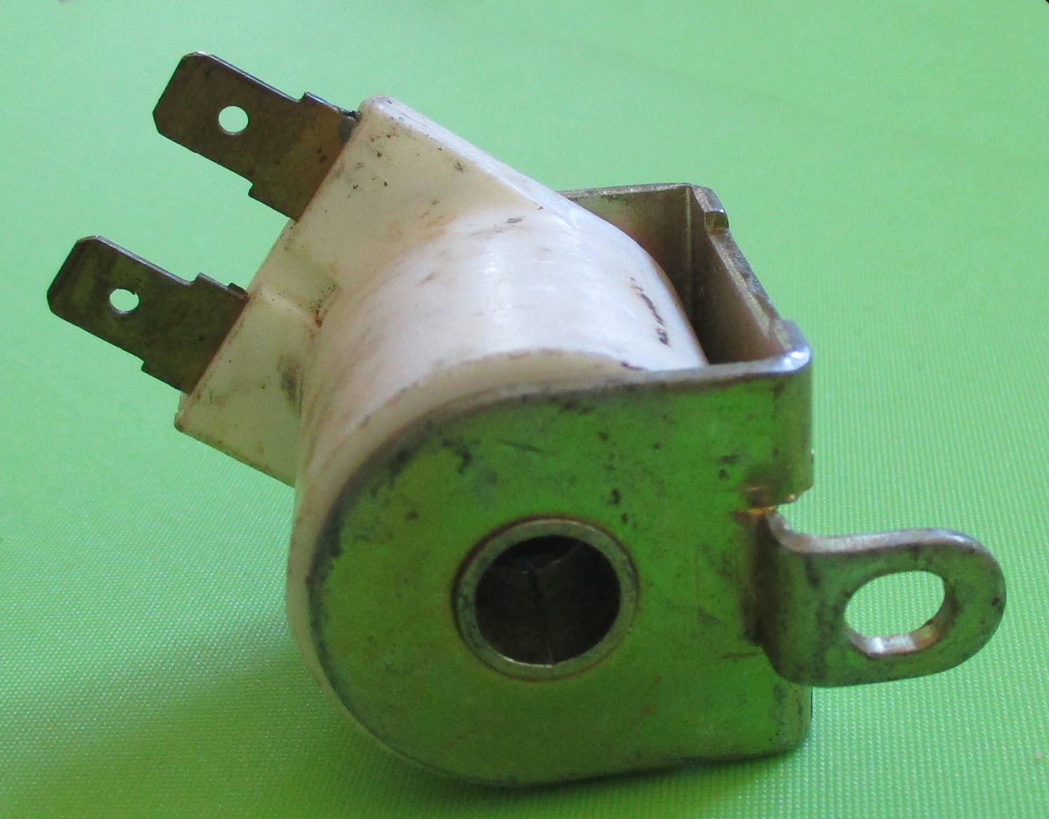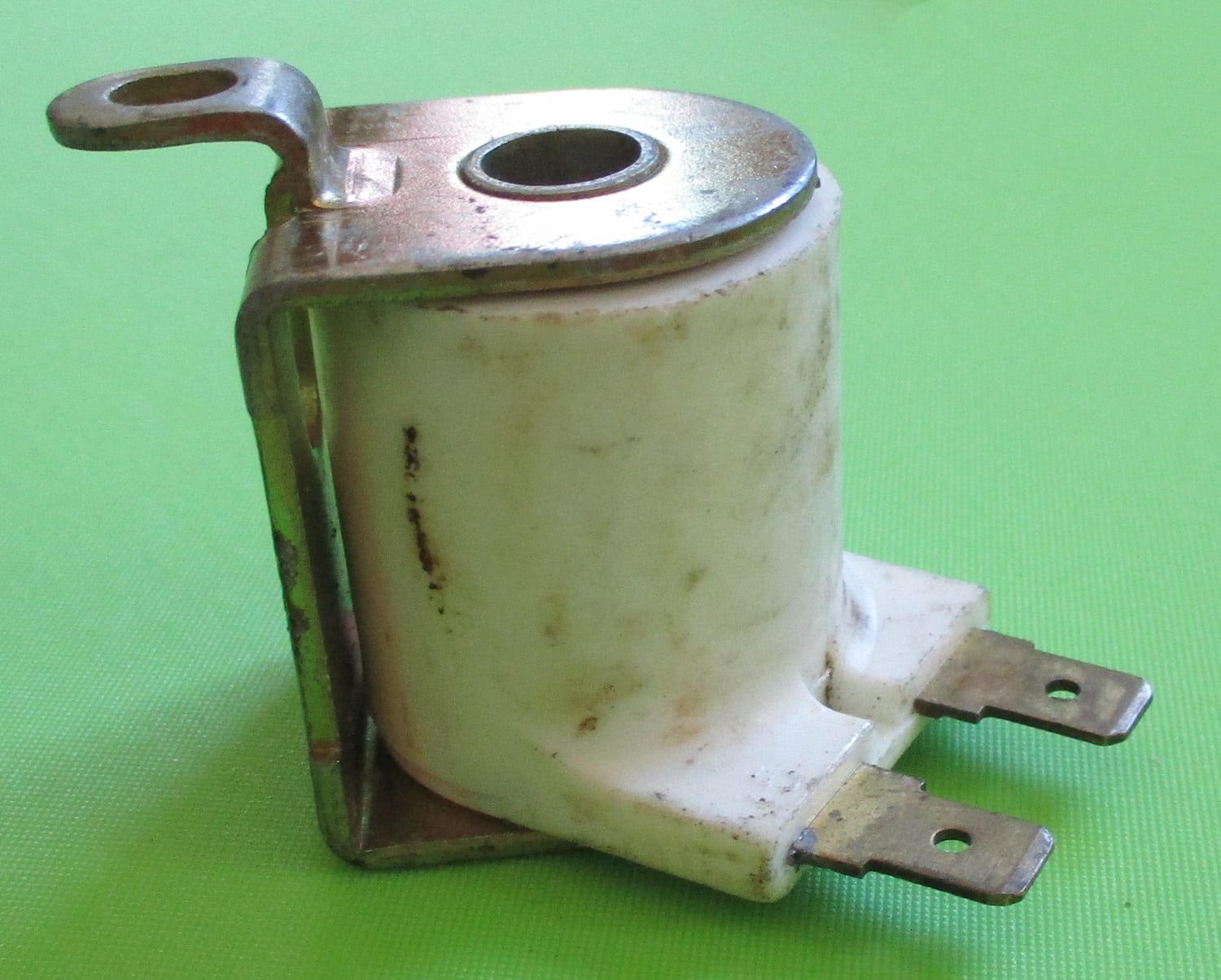NEW This DeLaval 240 volt, 50/60 hertz, 10-watt coil is a bit rugged-looking, but has not been used. It is 2 3/16″ long, 1 9/16″ high, and 1 5/8″ wide, overall. The plastic section is 1 3/16″ long with a 1 1/8″ outside diameter and a 5/16″ inside diameter. The metal prongs are each 7/16″ long and 5/16″ wide which decreases to 1/4″.