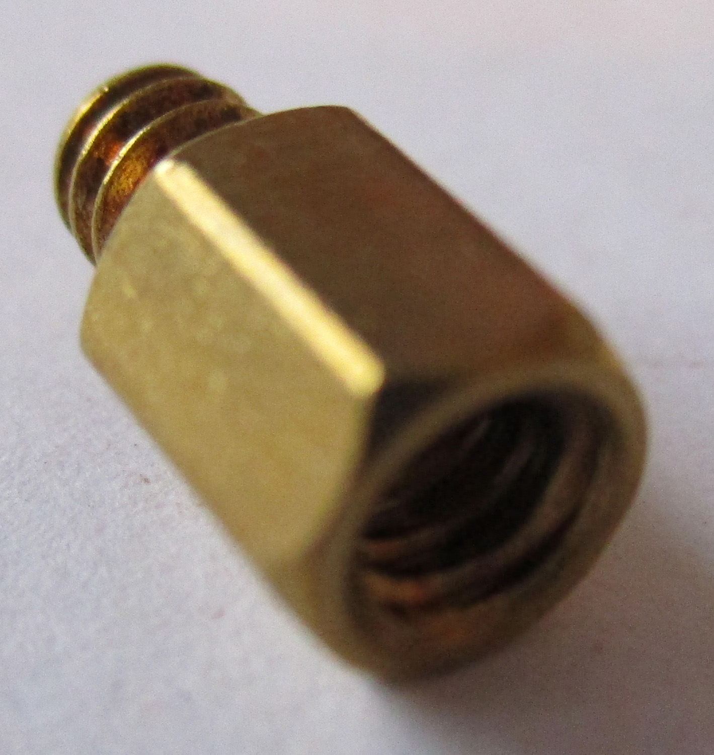 NEW This brass threaded stand-off is 3/8″ long. The outside threaded area is 1/8″ long with a 6-32 thread size. This stand-off is sold as a package of 13. The manufacturer and part number are unknown.