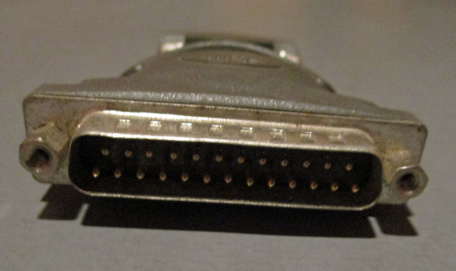 USED This plastic and metal, DB-25 Serial/Com Port male by DE-9F female computer connector measures, 2 5/8″ long by 2 1/16″ wide overall. The Surge part number is unknown. The Belkin part number is F2L088.