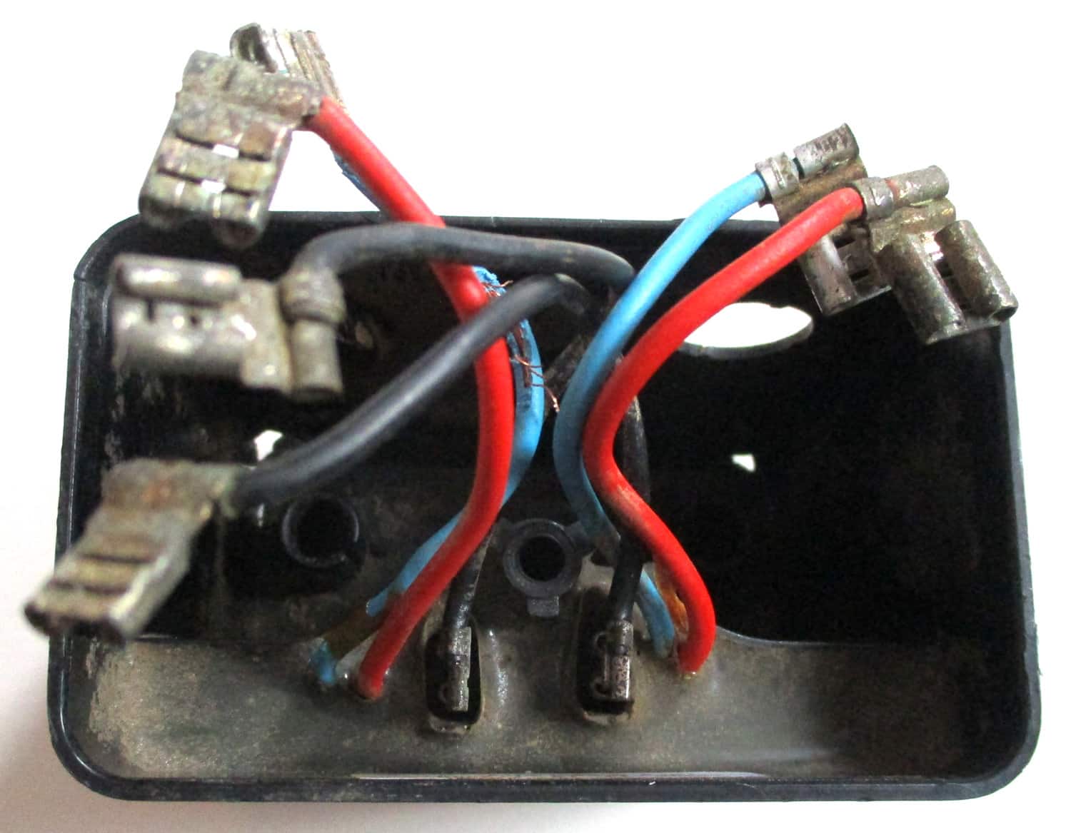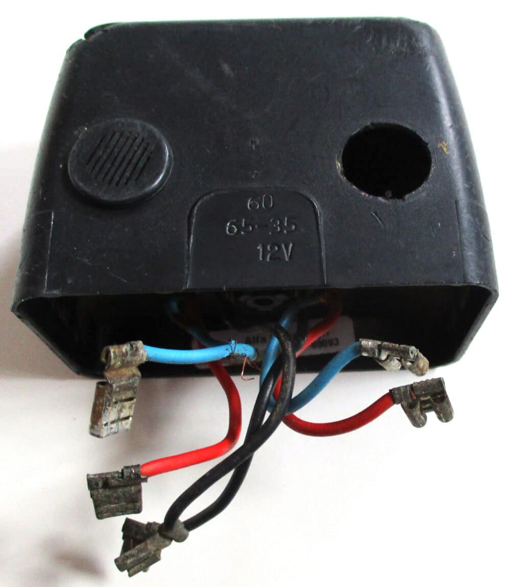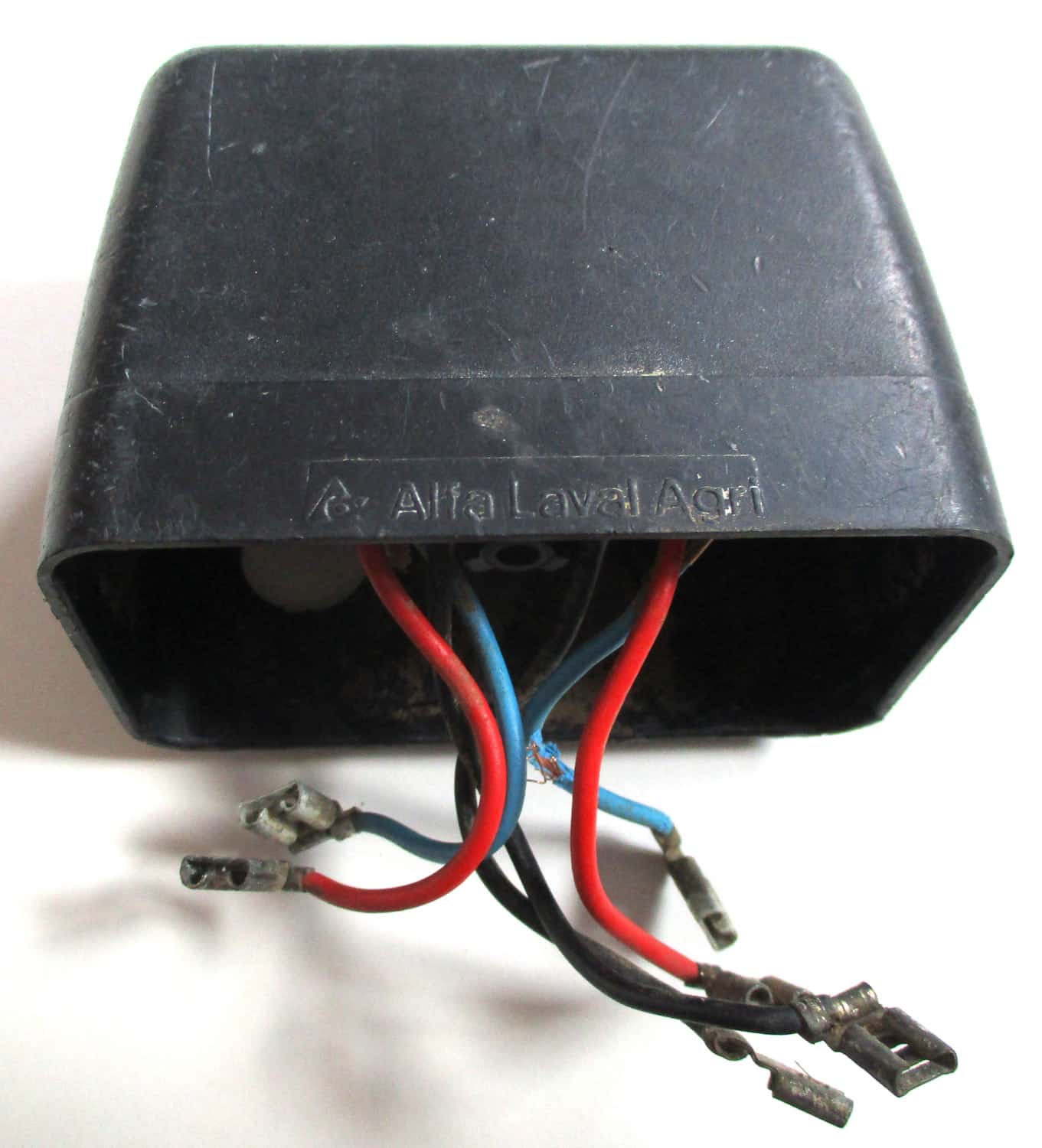 USED This plastic and metal control module with cover for the 12-volt DeLaval Delatron 65-35 pulsator is 3 1/8″ long by 1 15/16″ wide by 2 5/16″ high, overall. The wires are as follows: