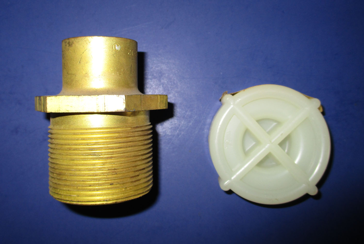 NEW This plastic and brass, female half suction coupling measures 2 1/4" long for the total length when joined together.