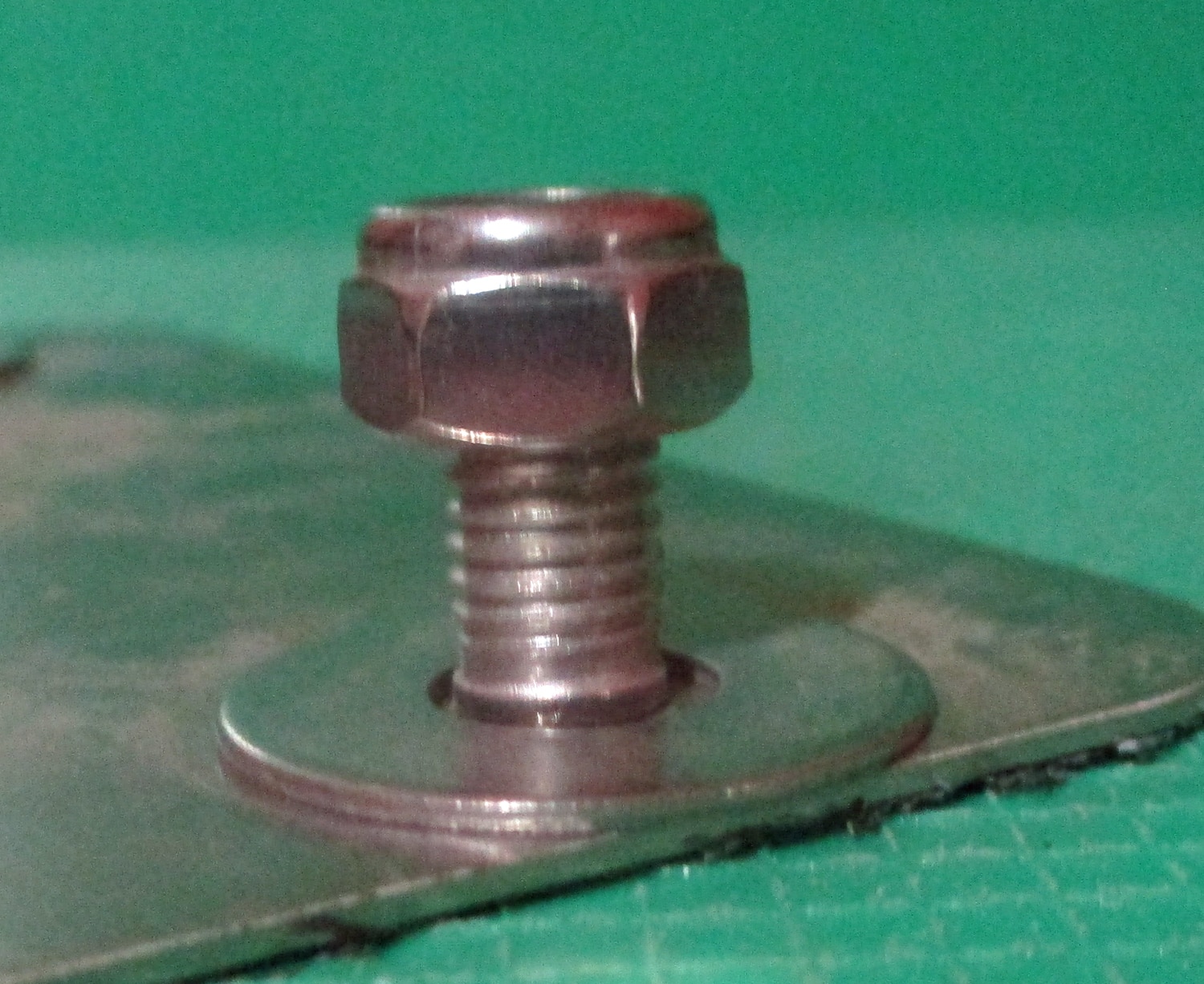 The bracket is 7 5/8″ long by 2″ wide by 1 1/8″ high. The round hole on the end has an inner diameter of 11/32″. The hole on the other end is 5/16″ by 5/16″ square. The center hole has an inner diameter of 7/16″. The oblong hole is 1″ long by 7/16″ wide. The bolts are 11/16″ long with an outer diameter of 9/32″ for the thread.