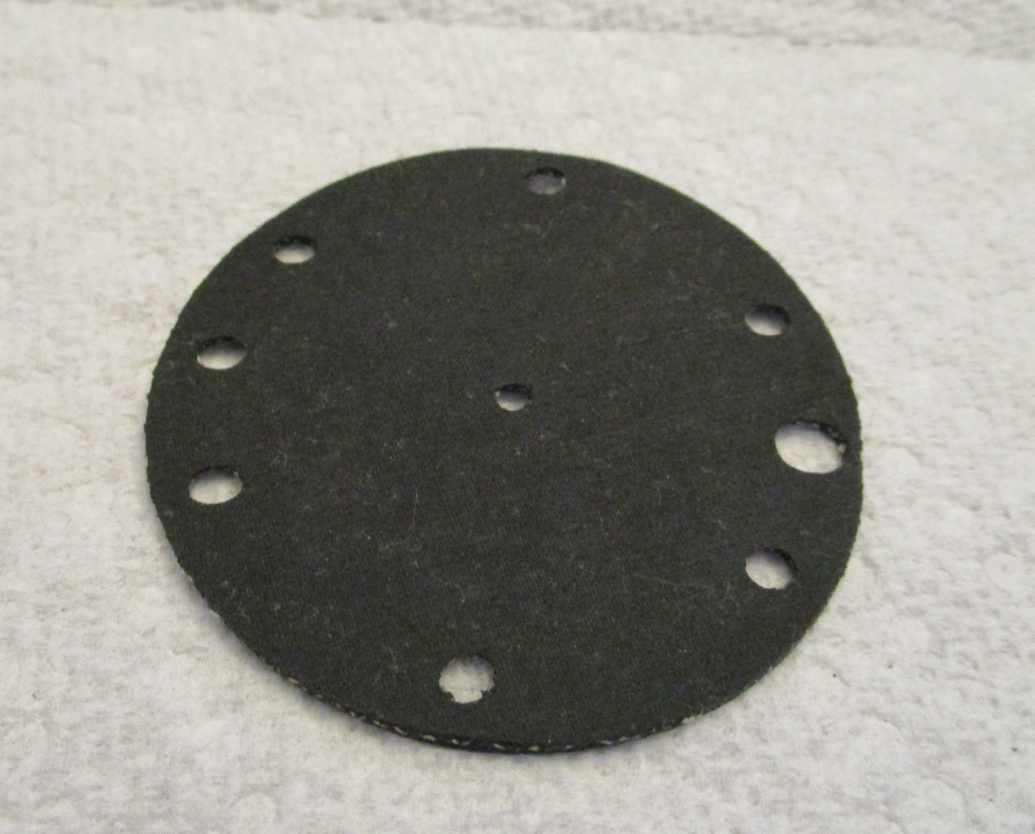 NEW This pilot valve diaphragm, is made of reinforced rubber material. It has an outer diameter of 2 1/16", and is 1/16" thick. The center hole has an inner diameter of 1/16". As for the other eight holes, seven have an inner diameter of 1/8", and one has an inner diameter of 3/16". The Boumatic manufacturer number is 8511945.