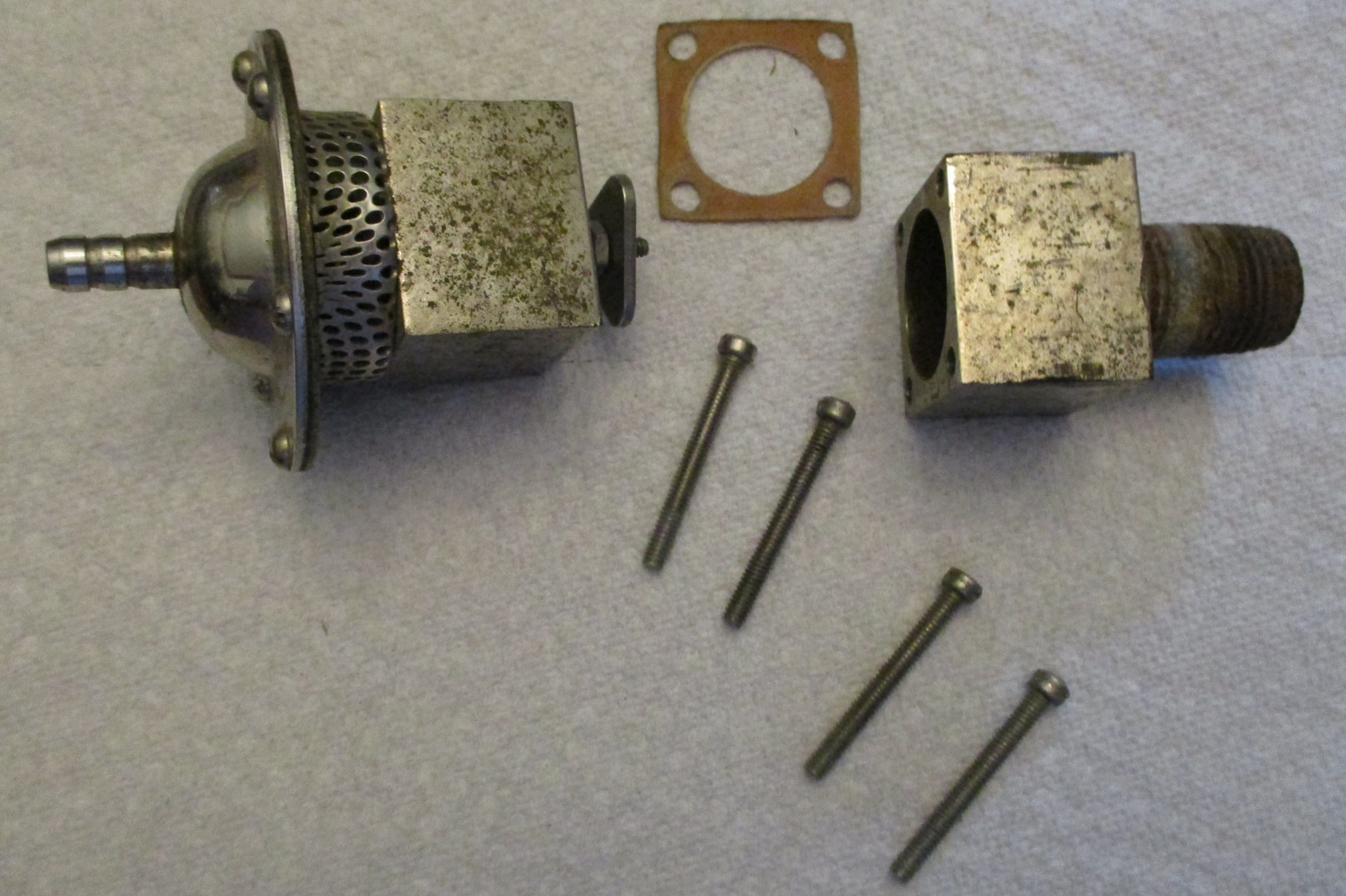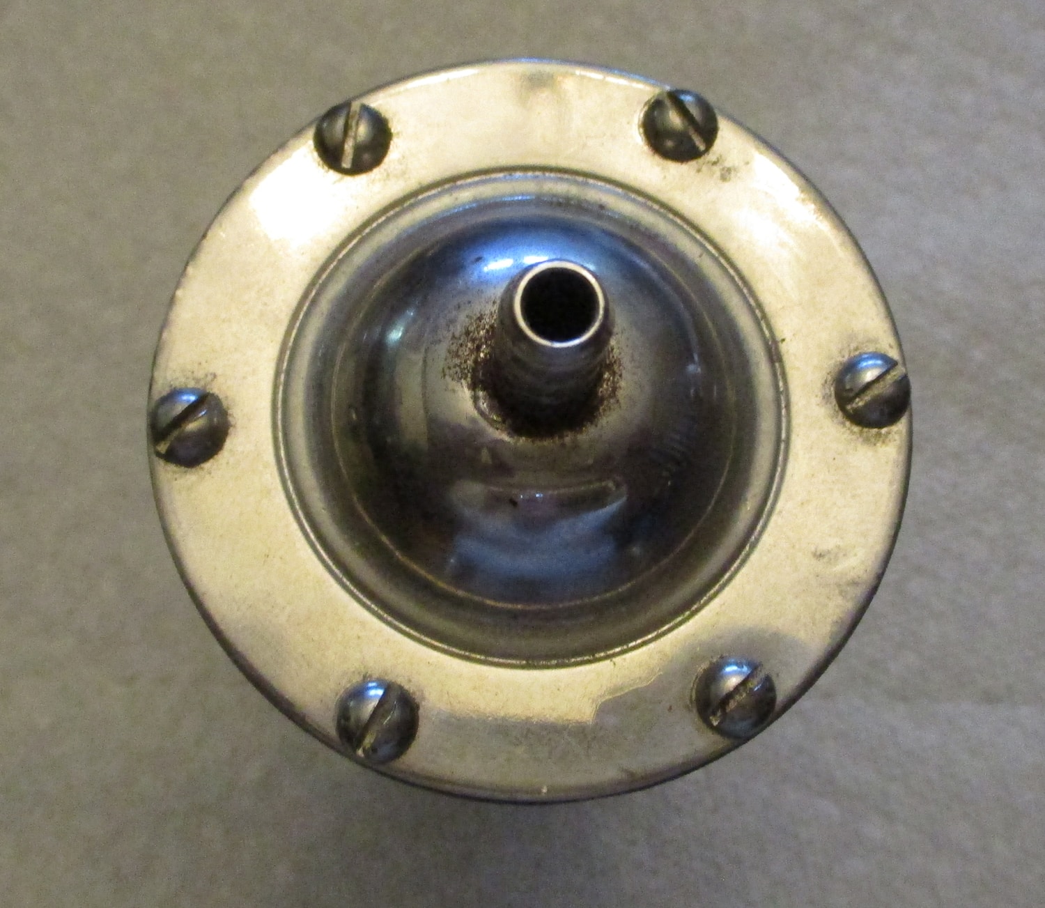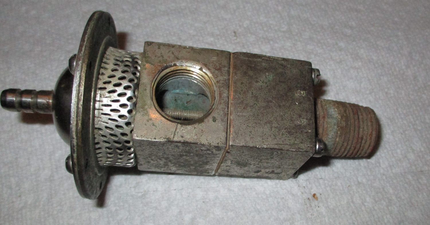 USED This is a Stainless Steel Surge Old Style Drain. It is 4″ in length (w/o the galv. nipple). The unit has 4 stainless 8-32 thread fillister head bolts. The drain has an 11/16″ barb on one end that measures 5/16″ OD and 3/16″ ID. The flange on the unit is 2-1/2″ in diameter. The unit inlet/outlet measurement is M20-1.5″. The unit comes apart in two main pieces, the top piece has an inlet/outlet block that measures 1-3/8″ x 1-3/8″ x 1-3/8″ with plunger. The unit bottom piece also measures 1-3/8″ x 1-3/8″ x 1-3/8″ with a galvanized nipple measuring 1-1/2″ L x 3/4″ OD x 5/8″ ID.