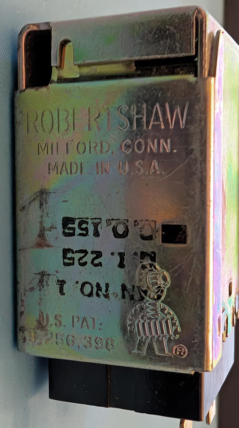 NEW This is a fan pressure control for the number two fan on an R22 condensing unit is manufactured in the USA by the Robert Shaw Company. This control measures 2 1/4″high by 2″ wide. It operates at 120 or 240 volts AC with a full load amp rating of 16 or 8 depending on the voltage. The lock rotor amperage is rated at 96 or 68 depending on the voltage. The Surge part number is 7750-0080-281.