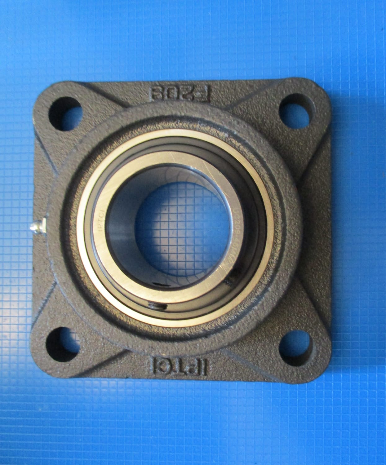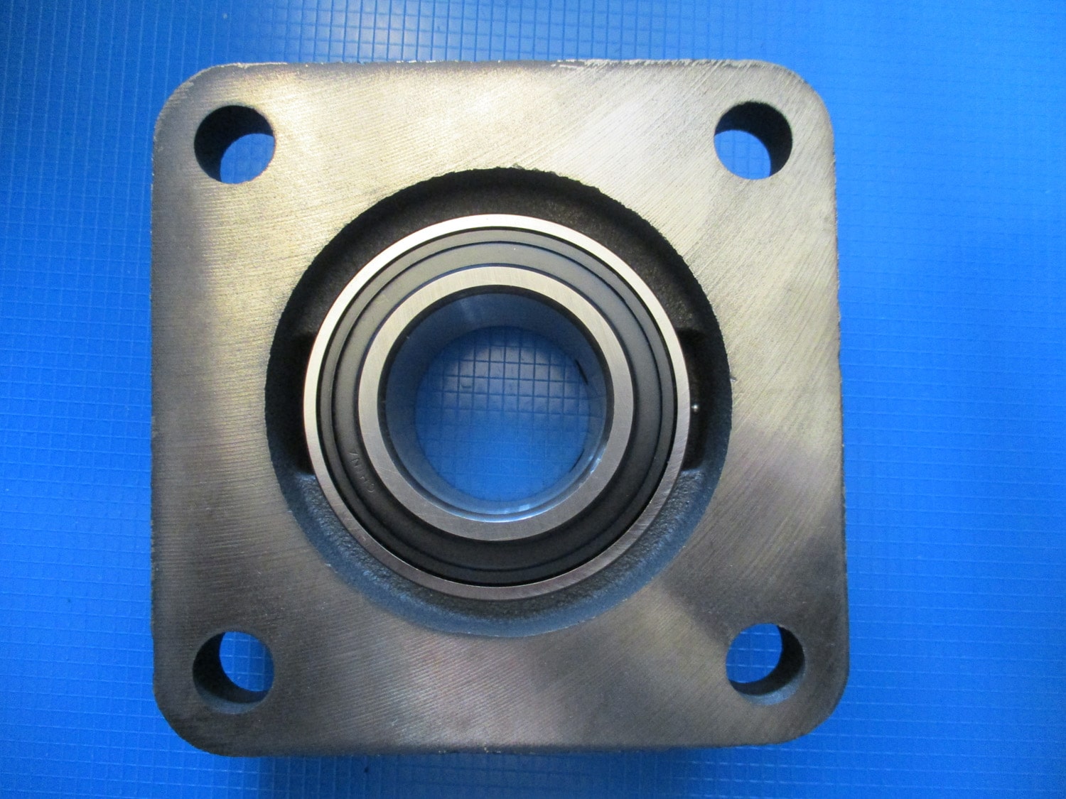 NEW This steel flange with bearing is used on the Xcalibur 360EX hydraulic drive system. It is uner the idler wheel. It is 5 7/16” long by 5 7/16” wide at the base and a height of 2 1/4”. The bearing has a 1 3/4” inside diameter and a 2 1/4” outside diameter. There are two (2) set screws on the collar. The Boumatic part number is 8581713.