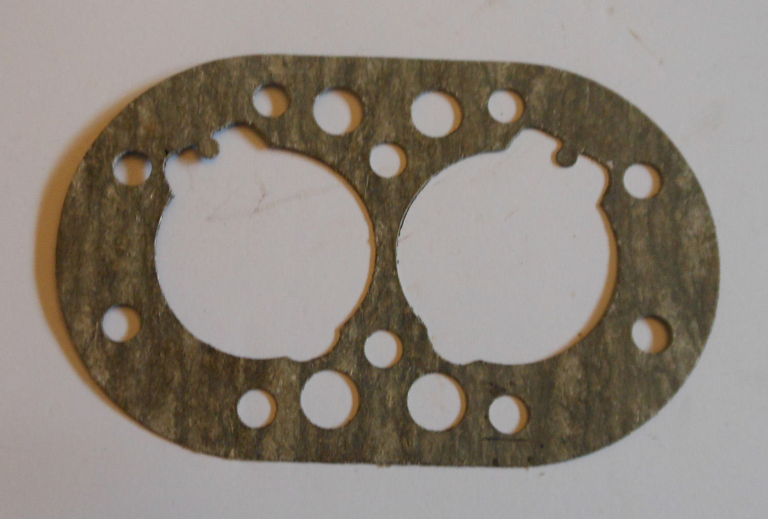 USED This cardboard semi-hermetic compressor unit gasket is oval and measures 5 3/8″ long by 3 1/2″ wide. The inside diameter of the two large openings is 1 3/4″. The holes are 7/16″ and 1/4″. There is 1″ between the 1/4″ holes on the frame and 1 5/16″ between them in the center of the frame. There is 3/8″ between the 7/16″ holes on either side of the frame. The indents on the inside circles are 1/4″ where the tab is and 1/8″ on the other end. The original manufacturer and part number are unknown.