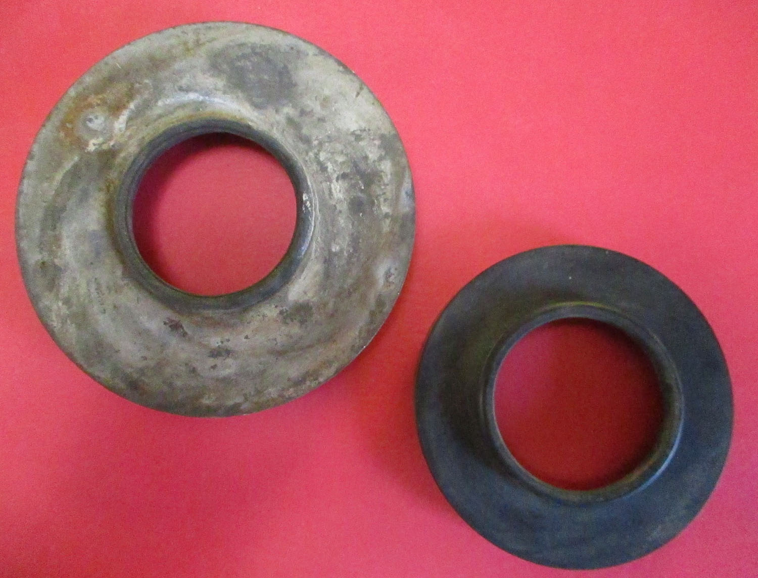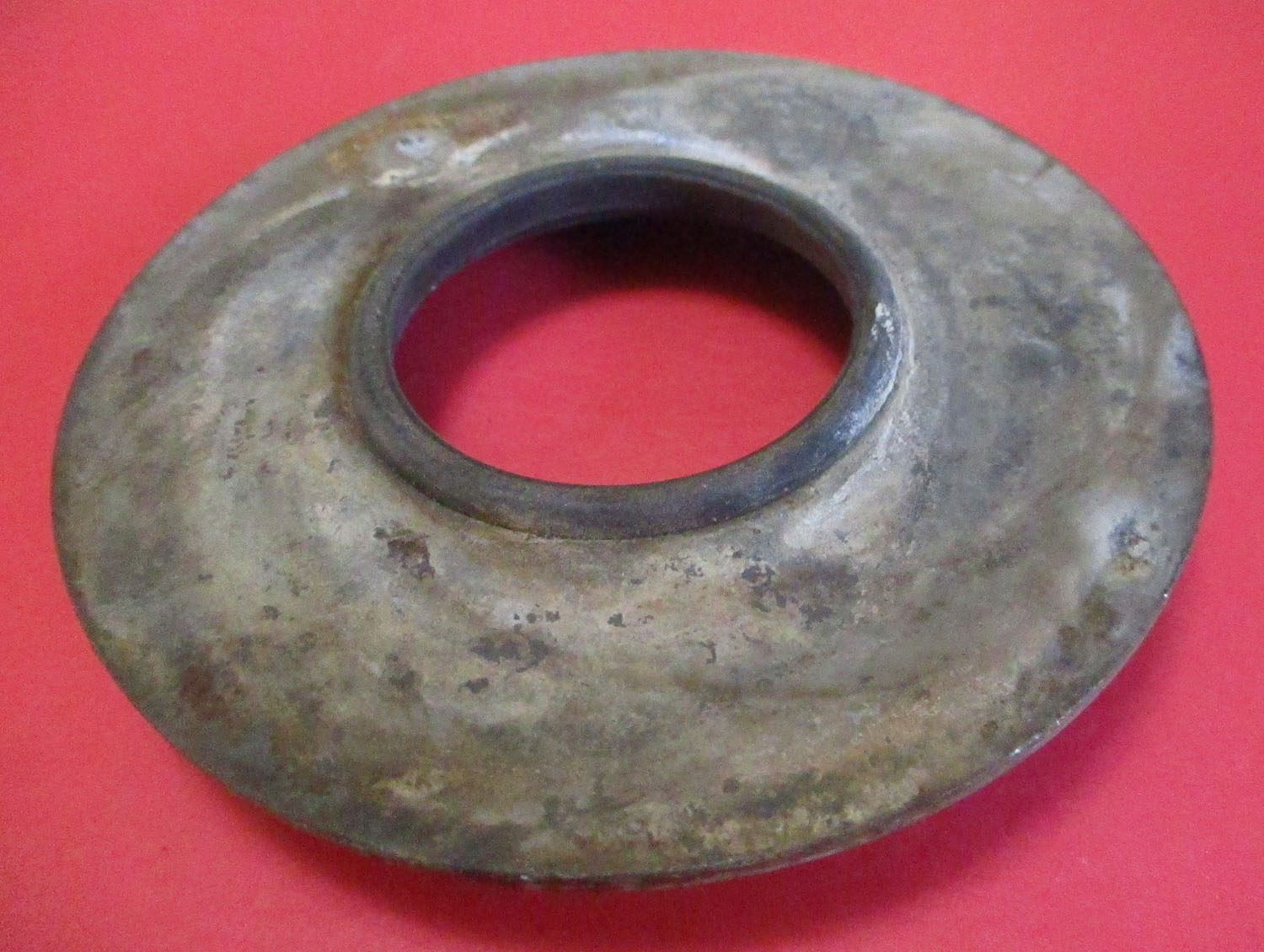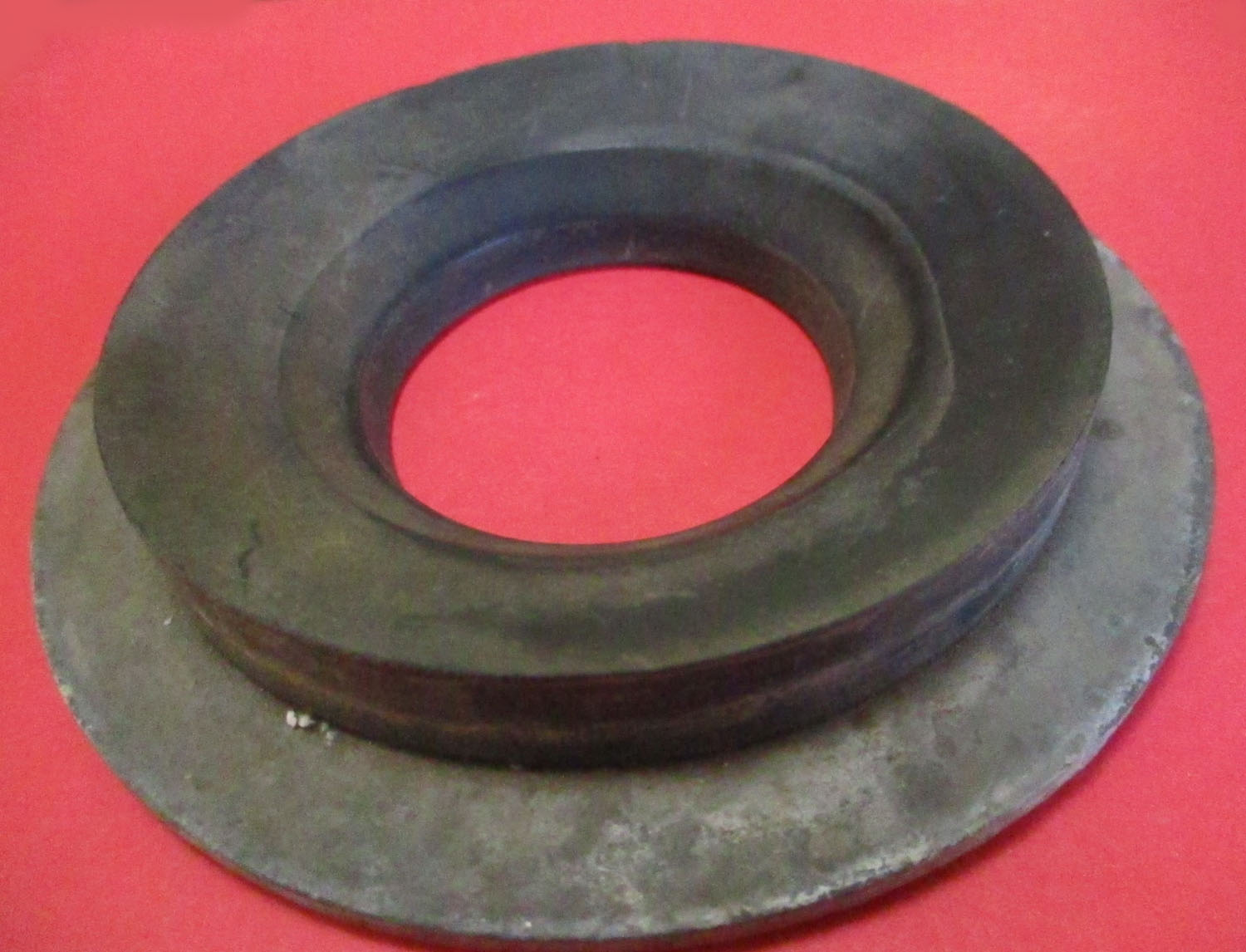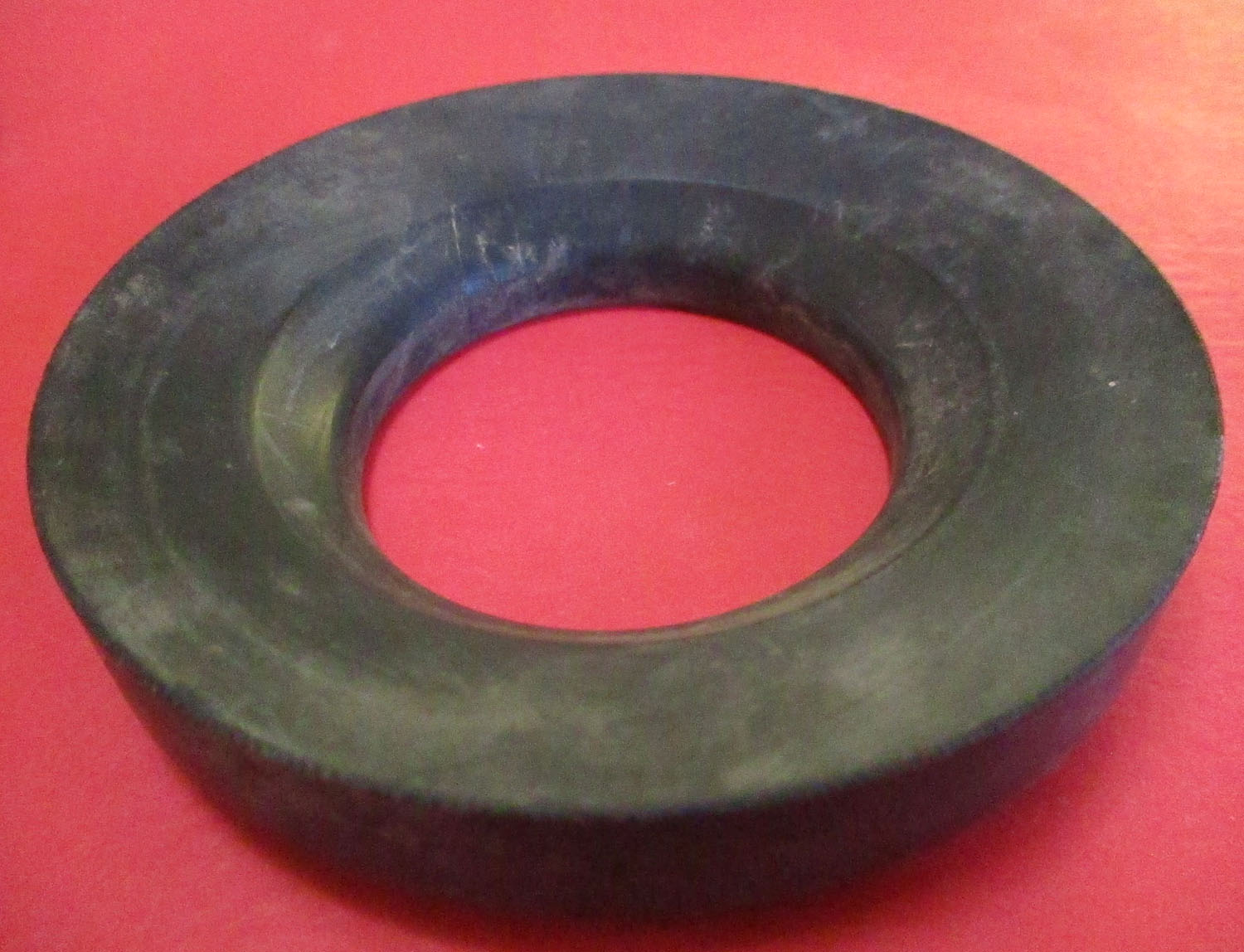 USED  This is a used metal plate and rubber gasket.  The metal plate has an outer diameter of 5 1/8″.   The gasket has an outer diameter of 4 1/8″, an inner diameter of 2 1/8, and is  7/8″ tall.  As seen in the pictures, there is an extra gasket included.