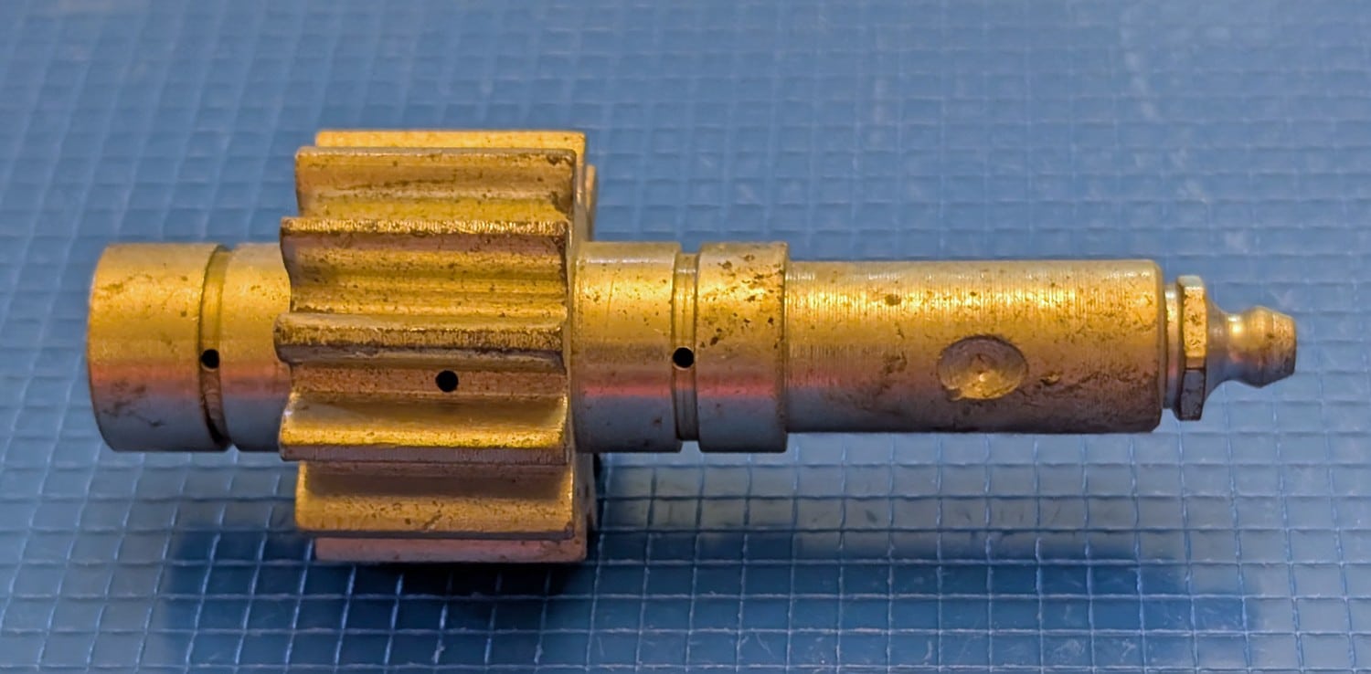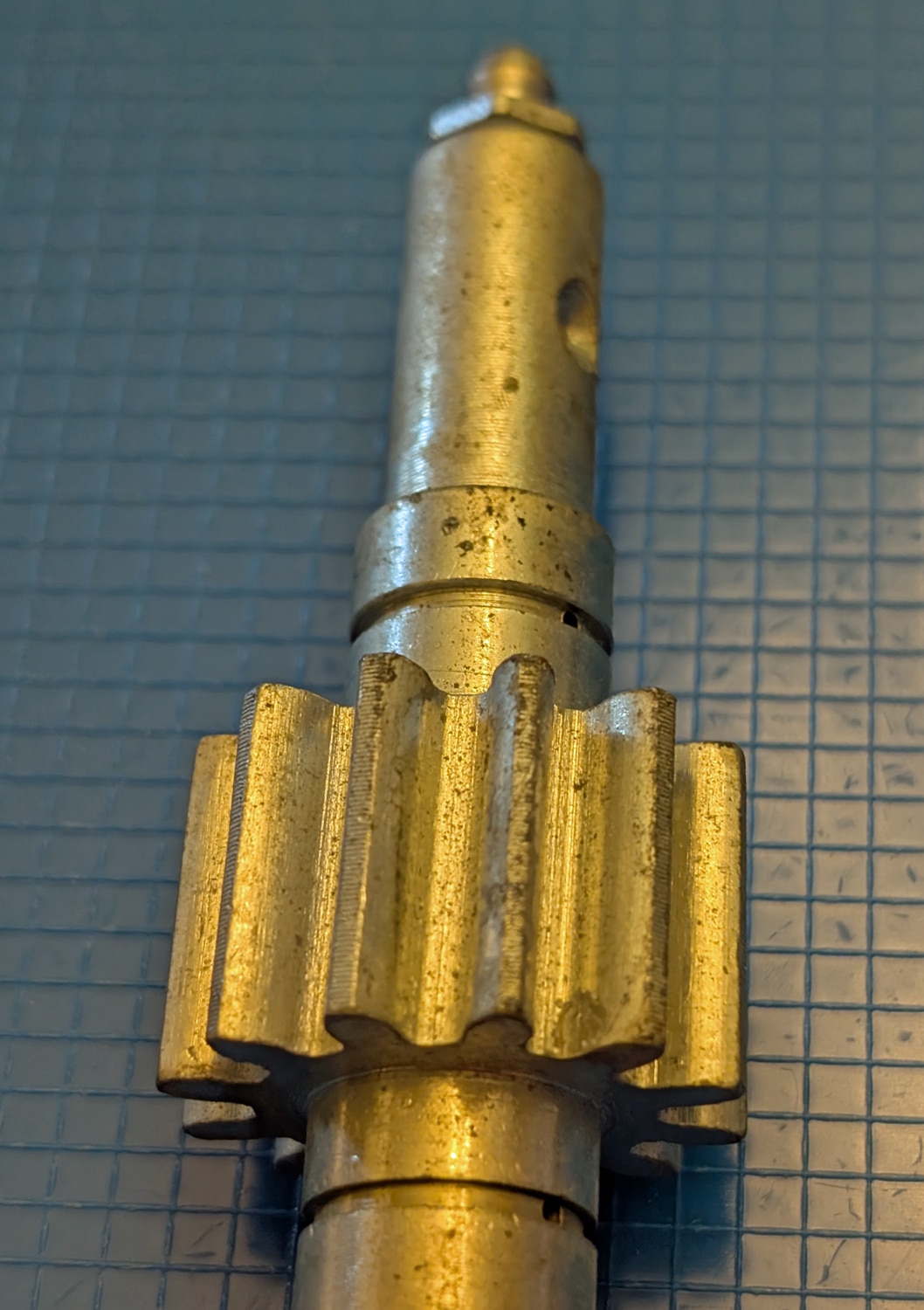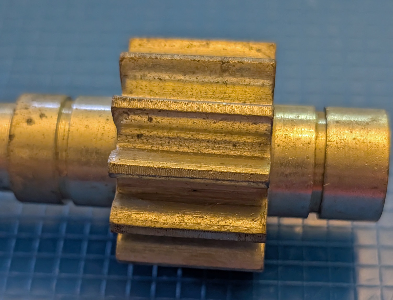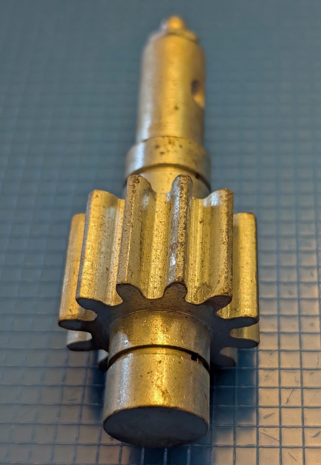 NEW This Surge metal gear for a Randall arm is 3 7/8″ long and has 12 teeth which have a 1 3/8″ outside diameter. The shaft outside diameter is 11/16″. The smaller end of the shaft has a 9/16″ outside diameter, and the tip has a 1/4″ outside diameter.
