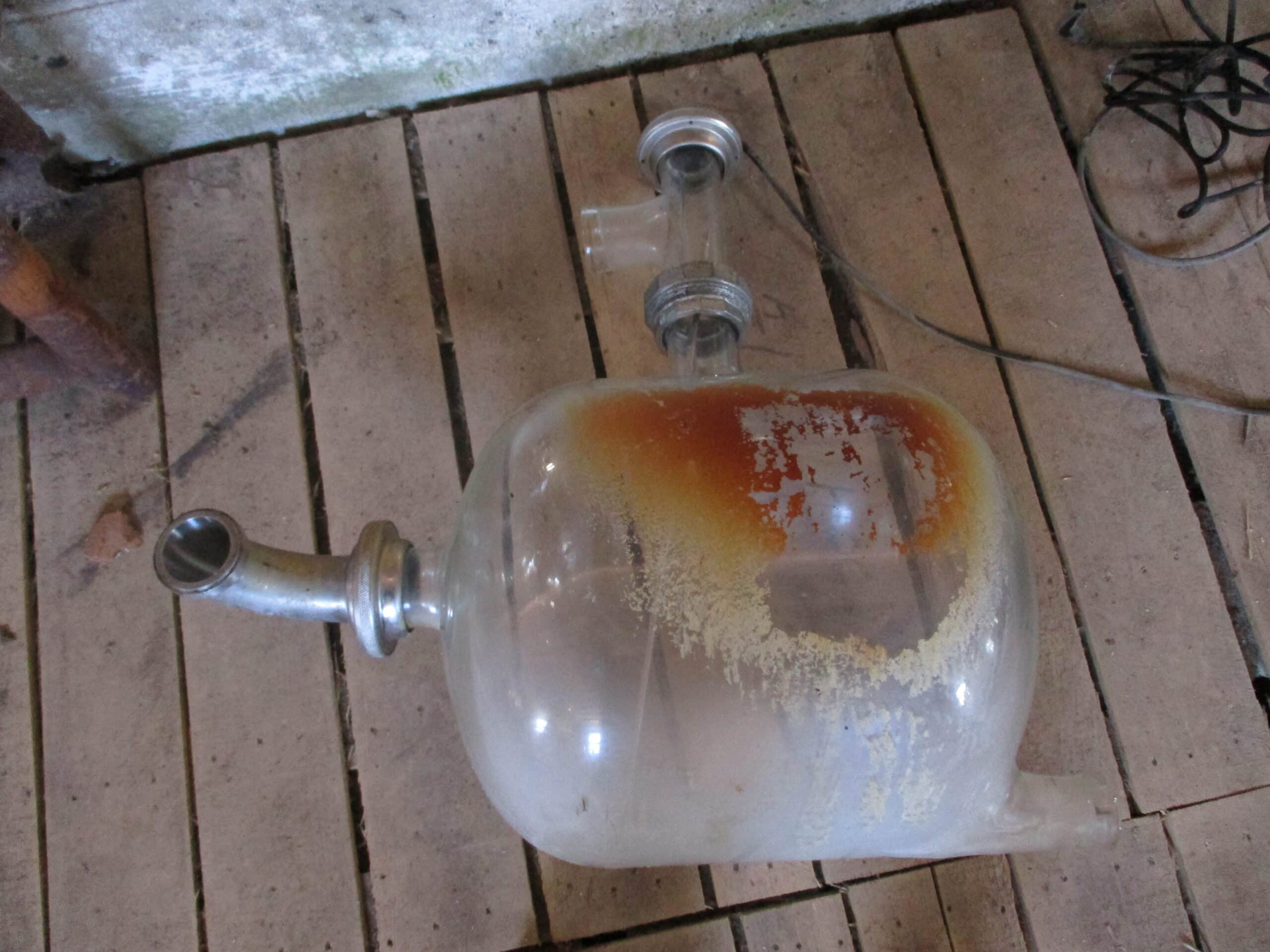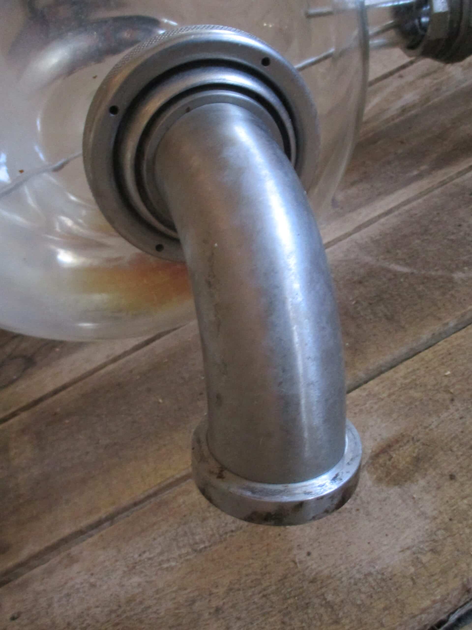 USED This receiver jar with diverter is made of glass, stainless steel, and metal. The overall length is 26″ and width 28″. The outside diameter of the jar is 14″.
