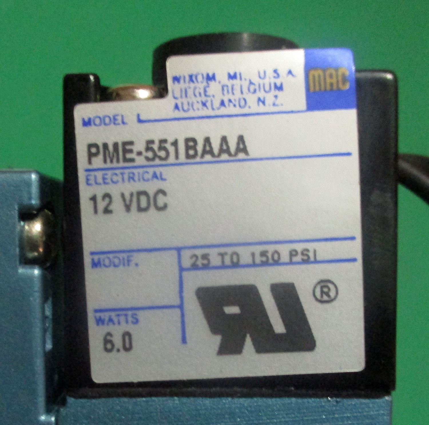NEW This Mac valve for a solenoid pilot control is made of metal, plastic, and wire. The unit measures: