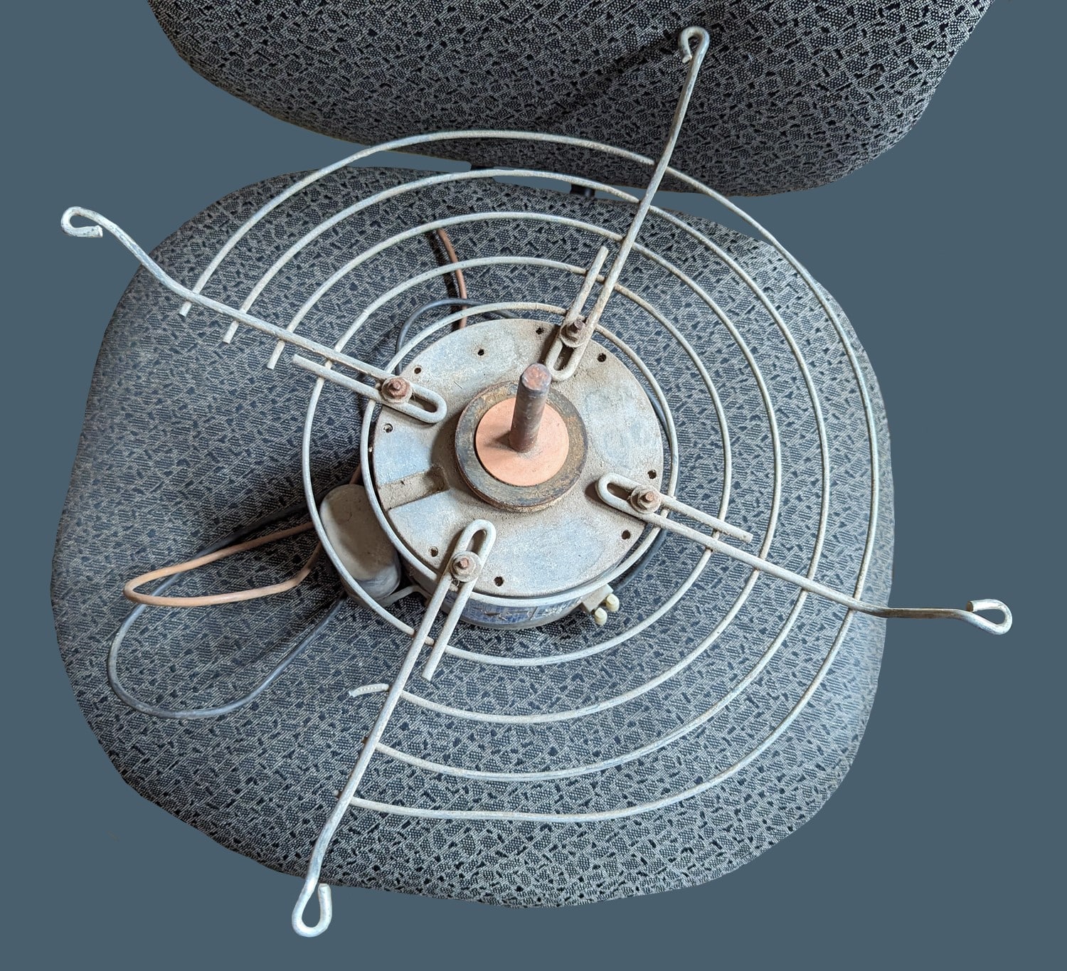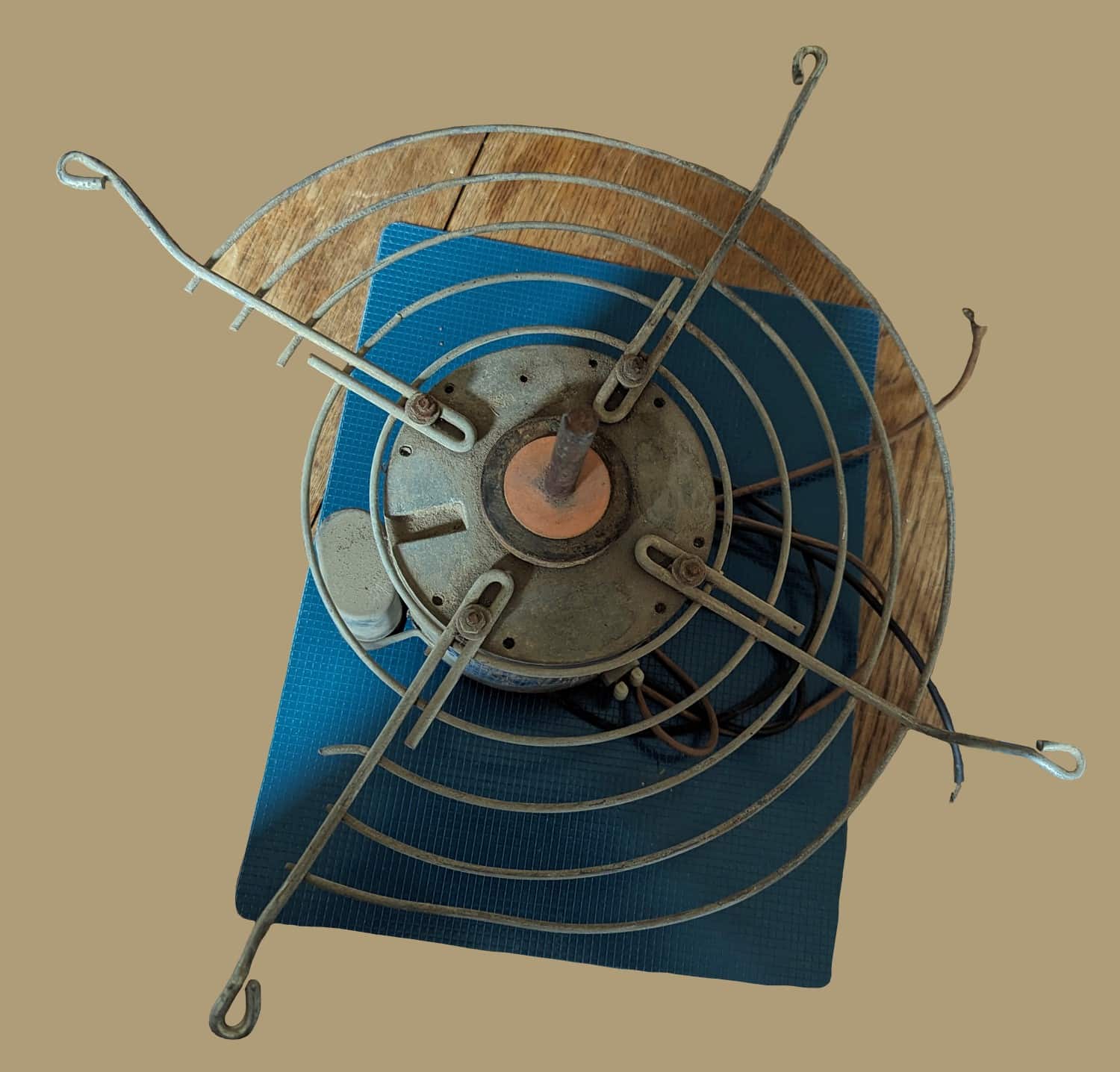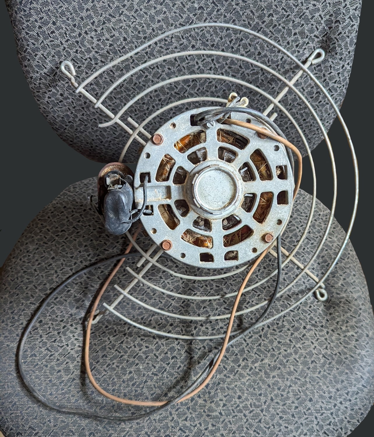 USED This fan motor with a back cage is made of metal. The unit measures: