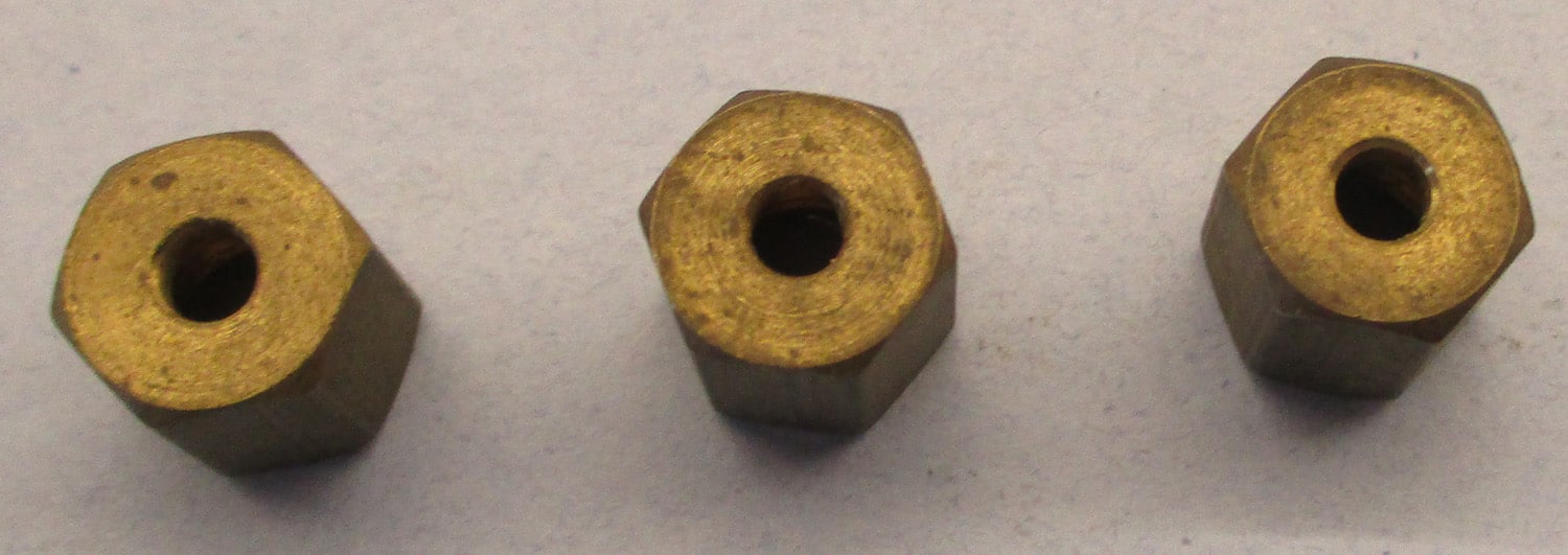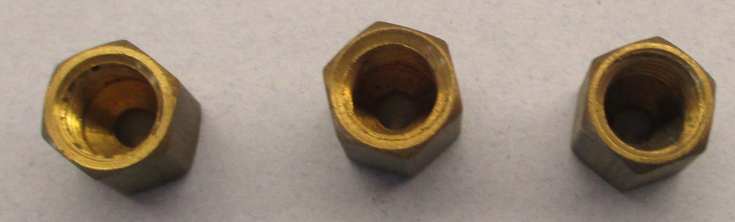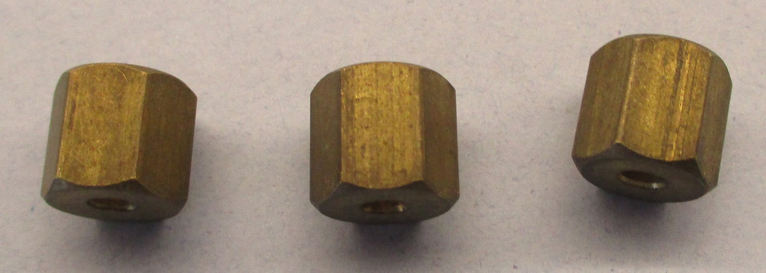 PUSED This is a brass compression nut. It measures 3/8″ high by 3/8″ hex outside diameter with 5/16-24 female threads. The nut has an 1/8″ inside diameter on the top end for 1/8″ outside diameter tubing.