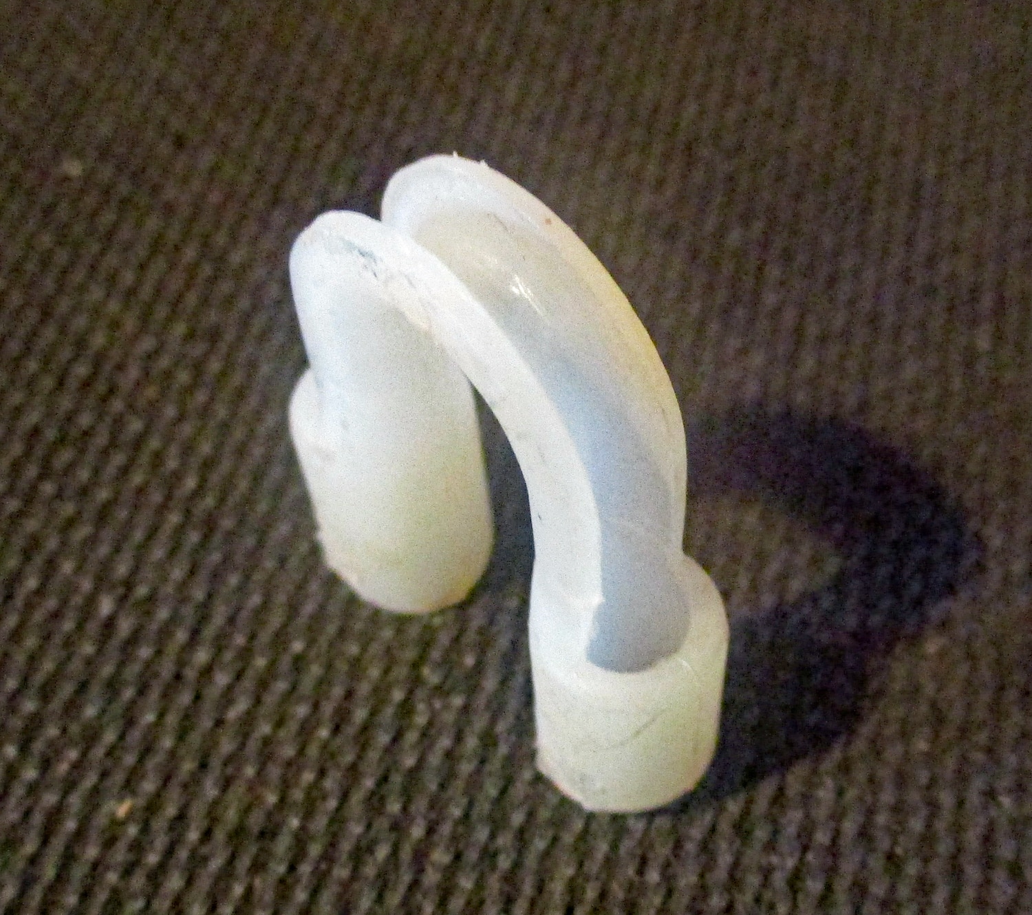 USED This plastic housing pin for an EMI Timekeeper measures, 1 3/16″ long by 15/16″ wide by 5/16″ high overall. The Surge part number is unknown.