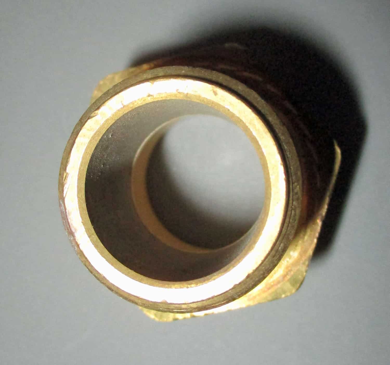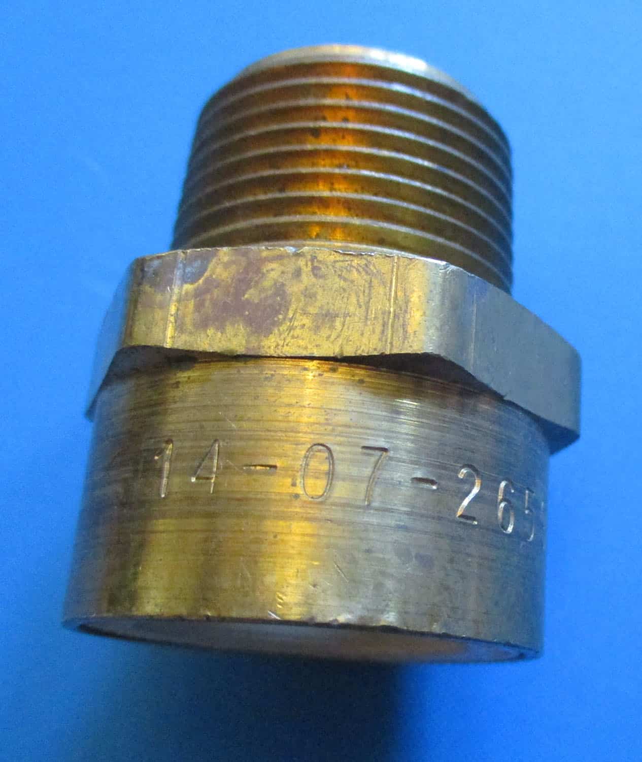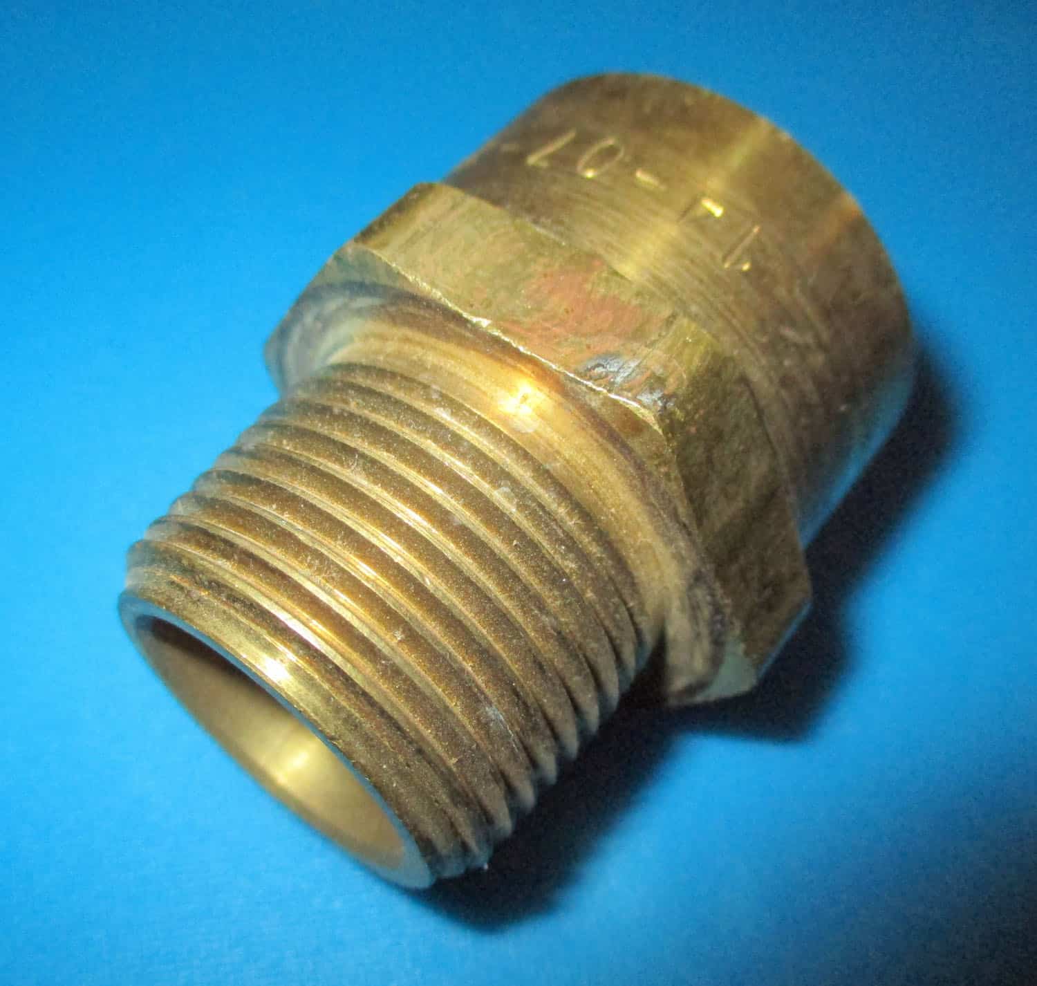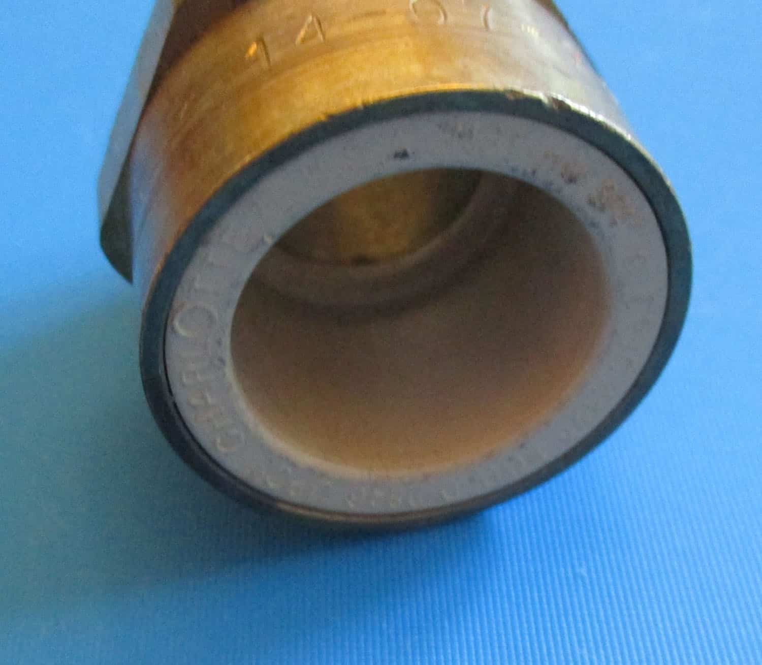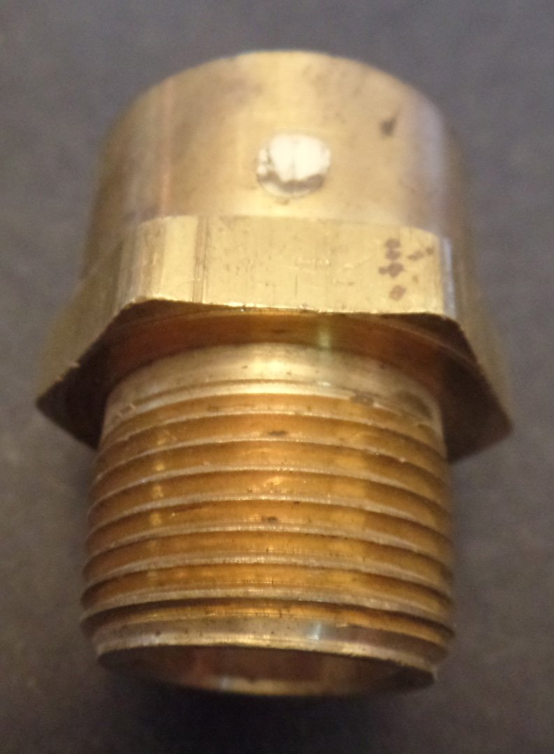 NEW  This is a brass with CPVC insert pipe fitting with a 3/4″ thread.  The end with the CPVC lining has a 7/8″ID and the male end has a 3/4″-NPT.