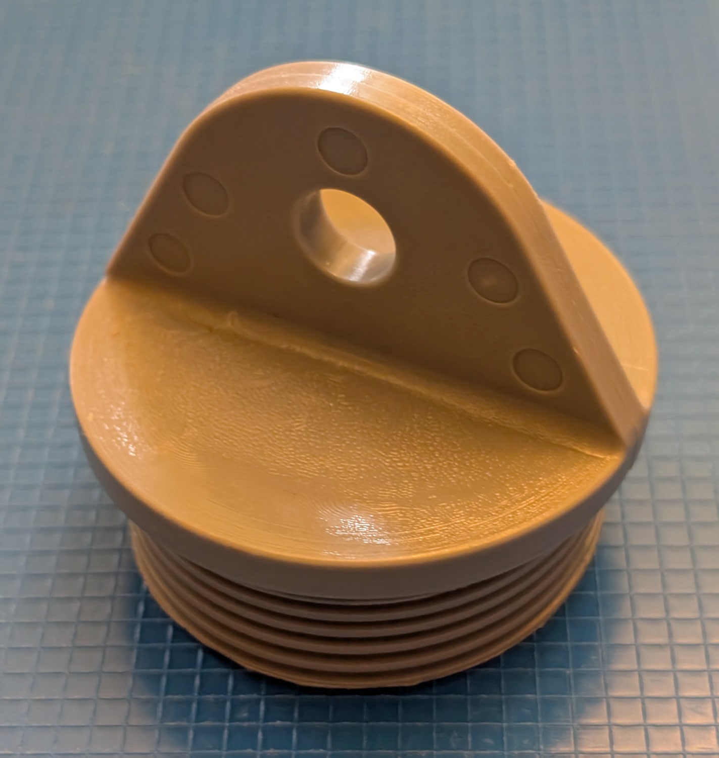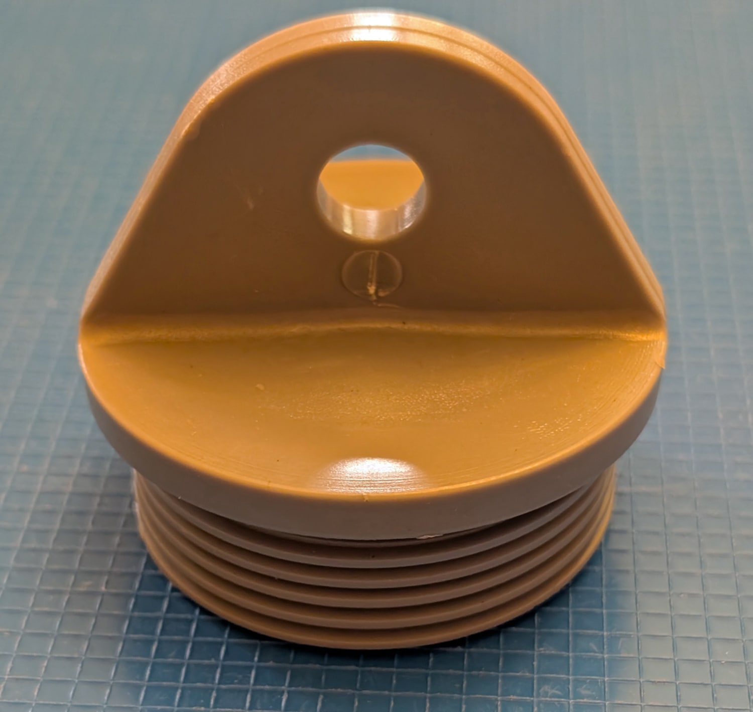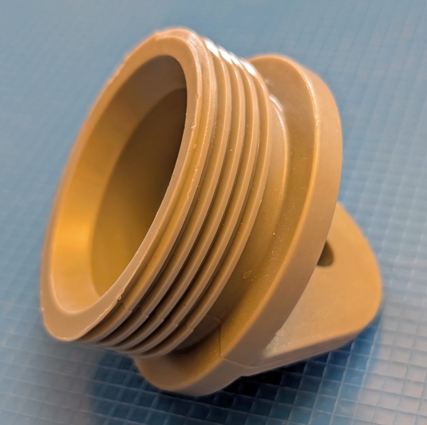 NEW This plastic plug is for a 2 1/2″ pipe. The plug measures 2 3/4″ high. The outside diameter of the thread is 2 1/2″. The beveled inside diameter is 2″, decreasing to 1 3/4″.