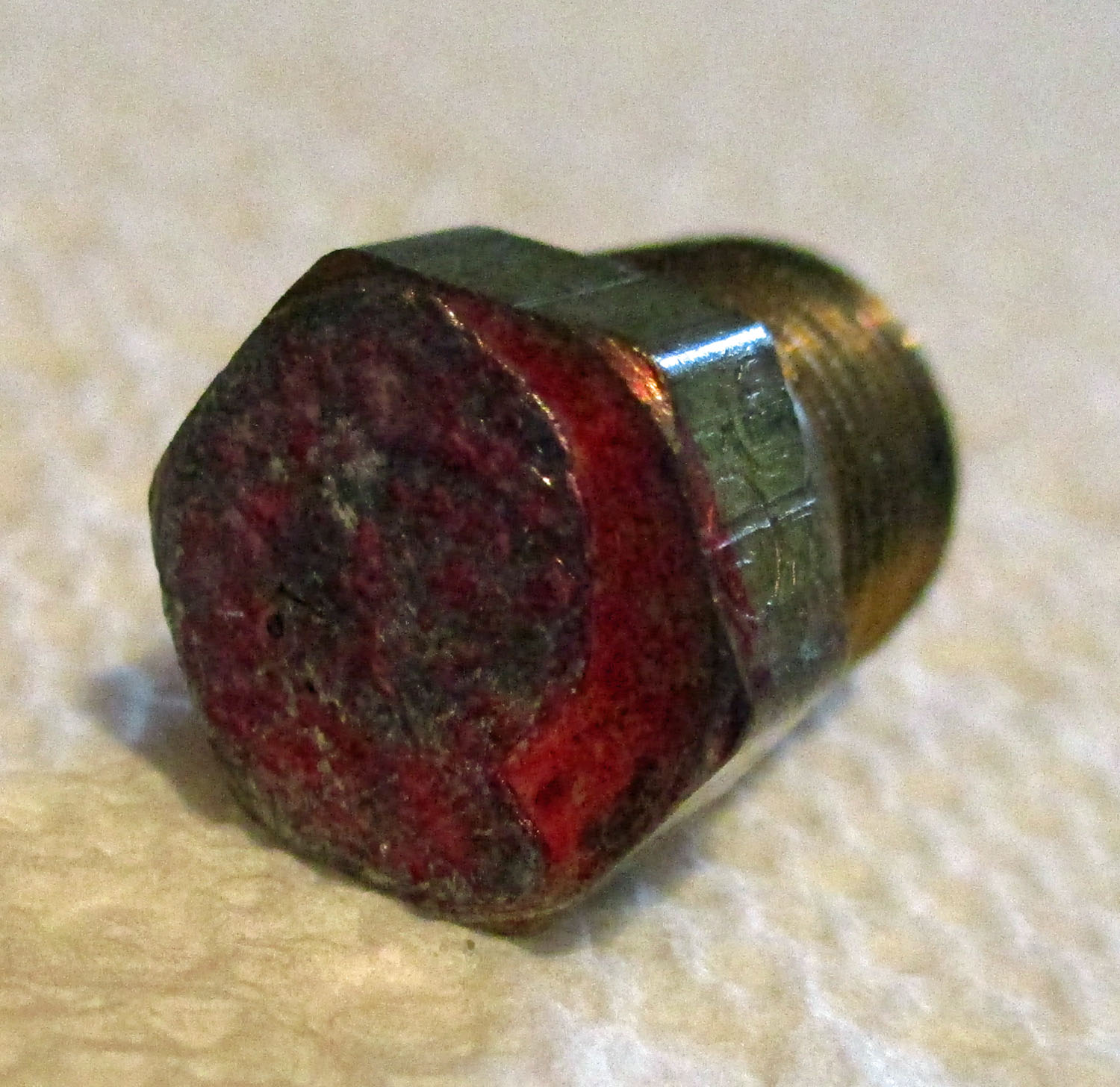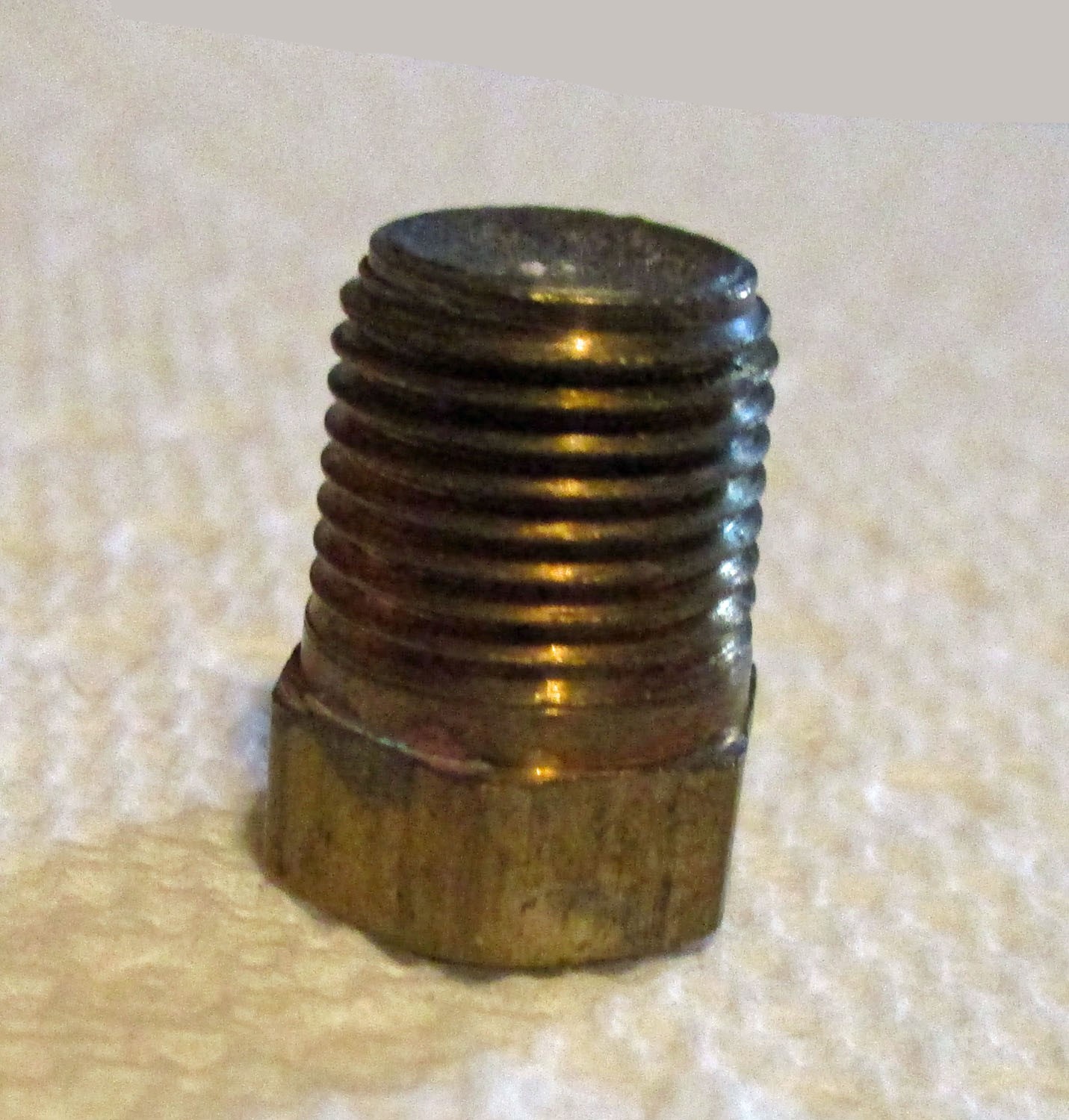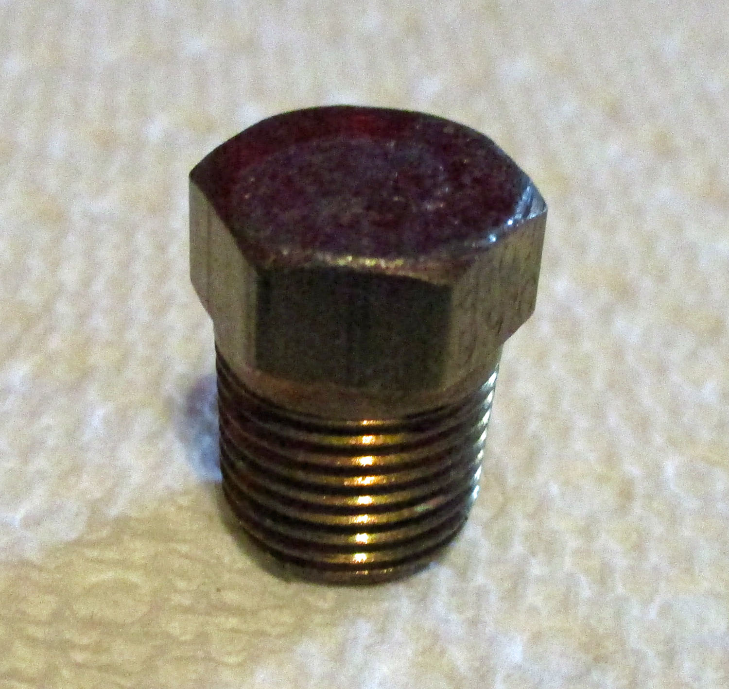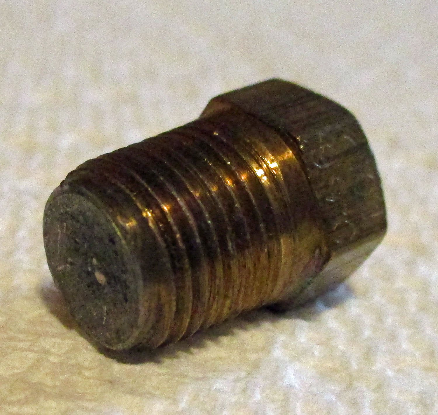 NEW This brass cooling receiver plug measures 5/8″ long. The head is 7/16″ wide, and the thread has a 3/8″ outside diameter. The manufacturer and part number are unknown.