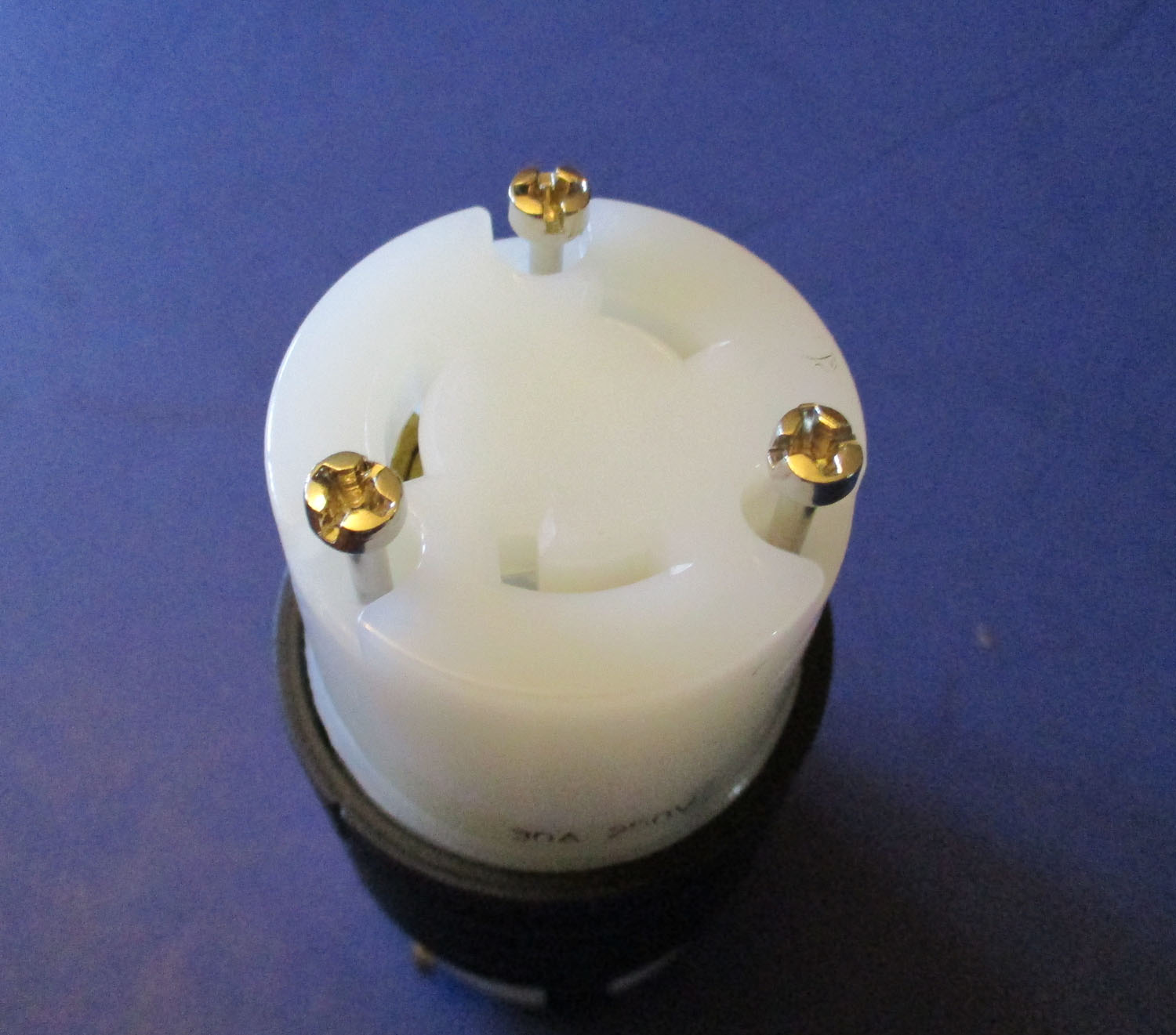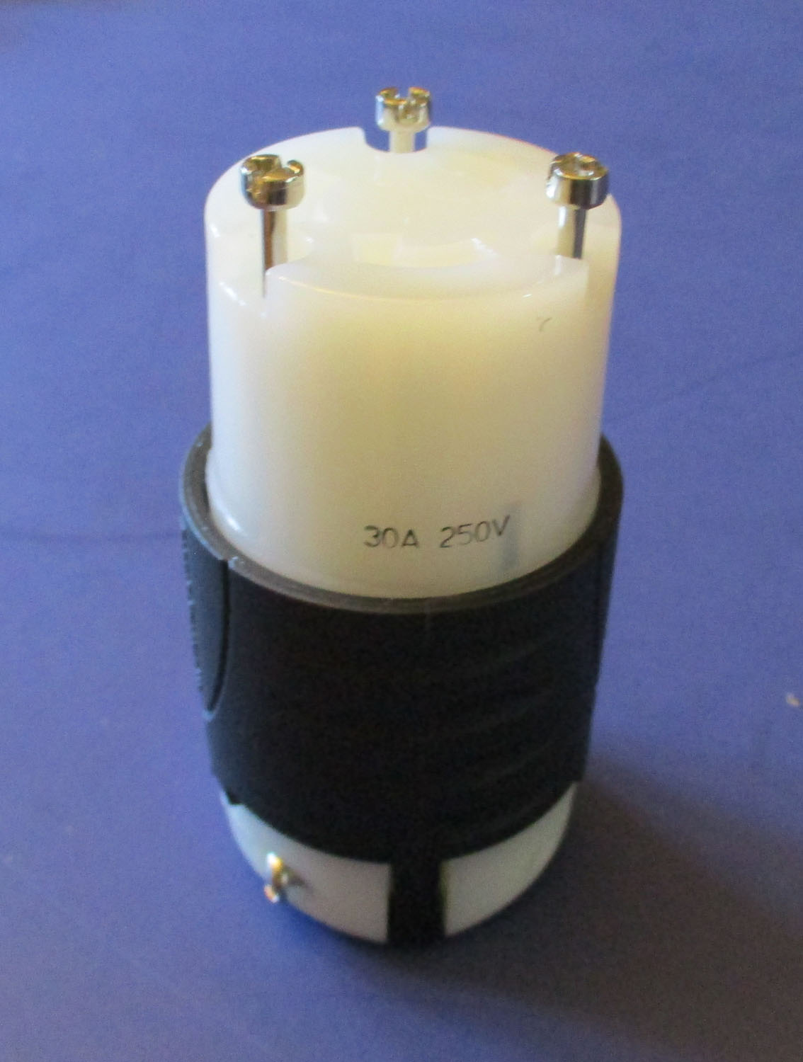 NEW This three receptacle female turn-lock plug is made of metal and plastic. It measures: