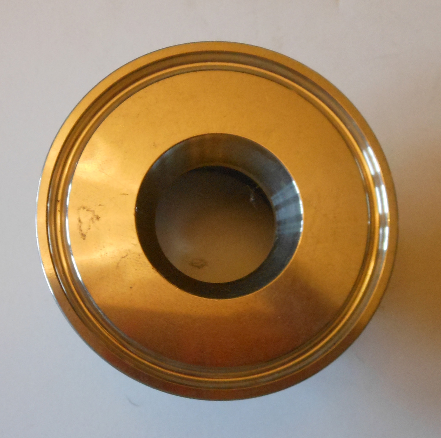 NEW This stainless steel reducer reduces from 2 1/2″ to 2″ and is 1 1/2″ long. It has tri-clover ferrules. The manufacturer and part number are unknown.