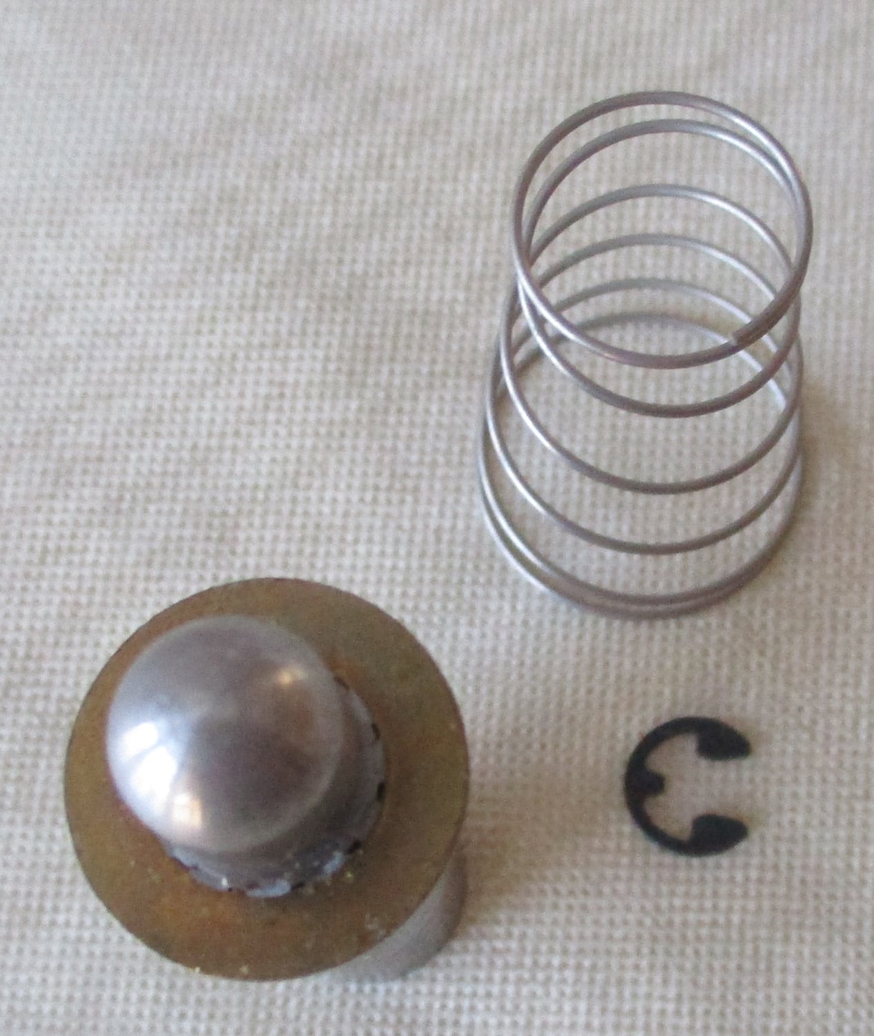 NEW This Sunset repair kit contains three pieces, all made of metal. The spring is 1 5/16″ long with a 13/16″ outside diameter which decreases to 9/16″. The clip has a 5/16″ outside diameter with a 1/8″ opening and is 1/64″ thick. The armature is 1 7/8″ long. The largest section is 1 5/16″ long with a 1/2″ outside diameter. The dome is 5/16″ long with a 3/8″ outside diameter. The flat section between is 1/64″ thick with an 11/16″ outside diameter.