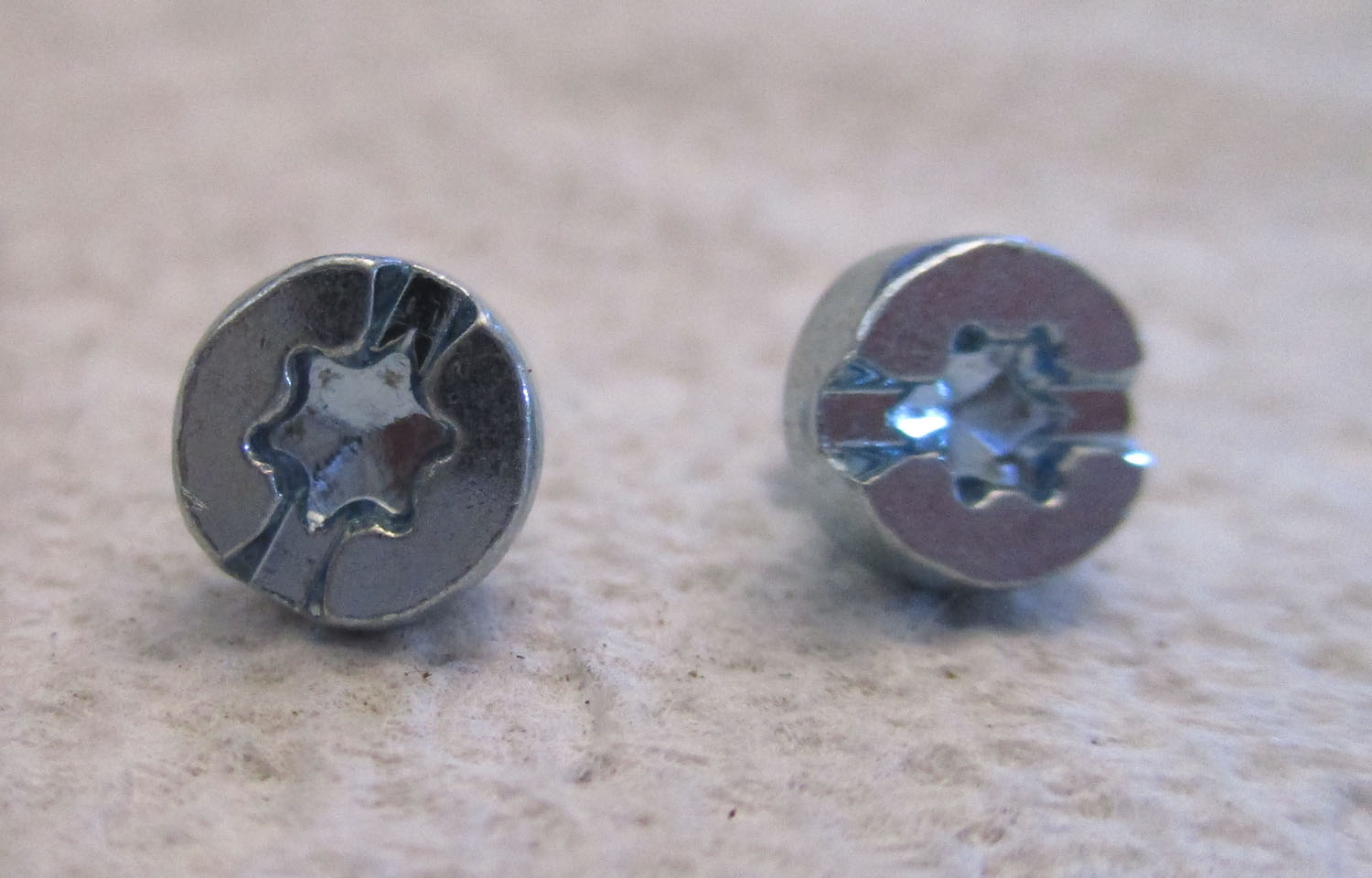 NEW These five metal combination slots and torque head screws measure, the total length is 1/4″, the head diameter is 1/4″, the thread length is 1/8″. They have a thread size of #6-32. The manufacturer and part number are unknown.