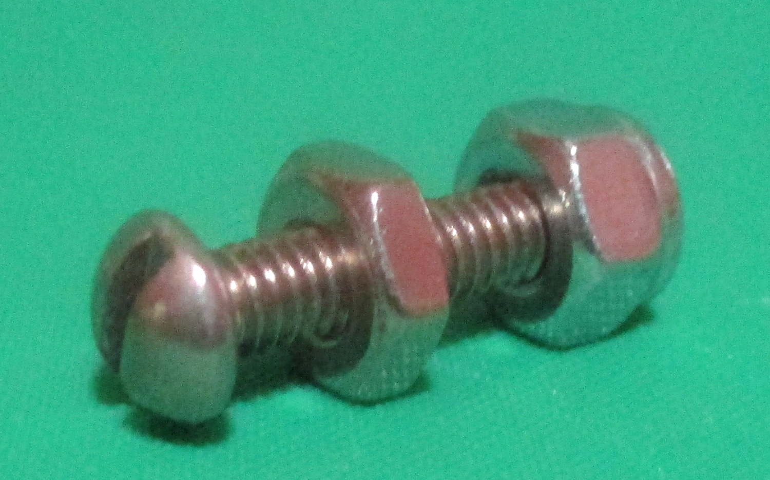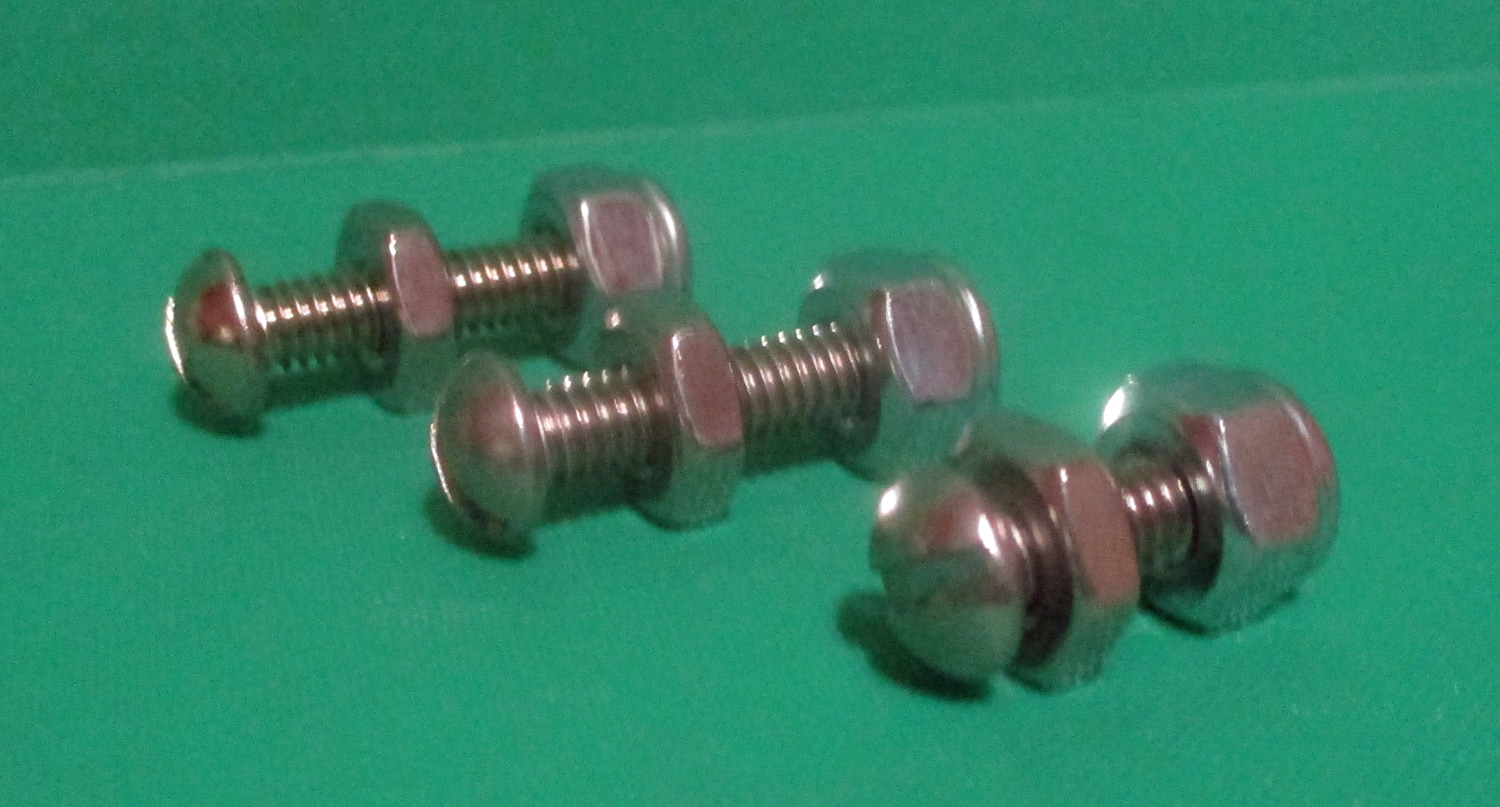 NEW This package of three round head slotted screws with two nuts is made of stainless steel. The unit measures: