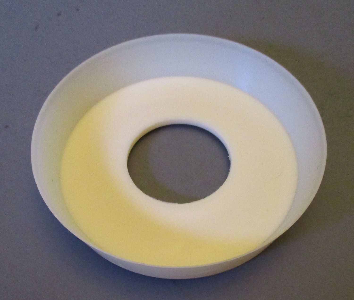 NEW This DeLaval plastic seal for an ACR Piston has a 3 3/8″ outer diameter at the bottom and tapers to a 3 1/16″ outer diameter at the top. The side measures 3/4″ high. The inner diameter is 1 3/8″. The DeLaval part number is 98346101.
