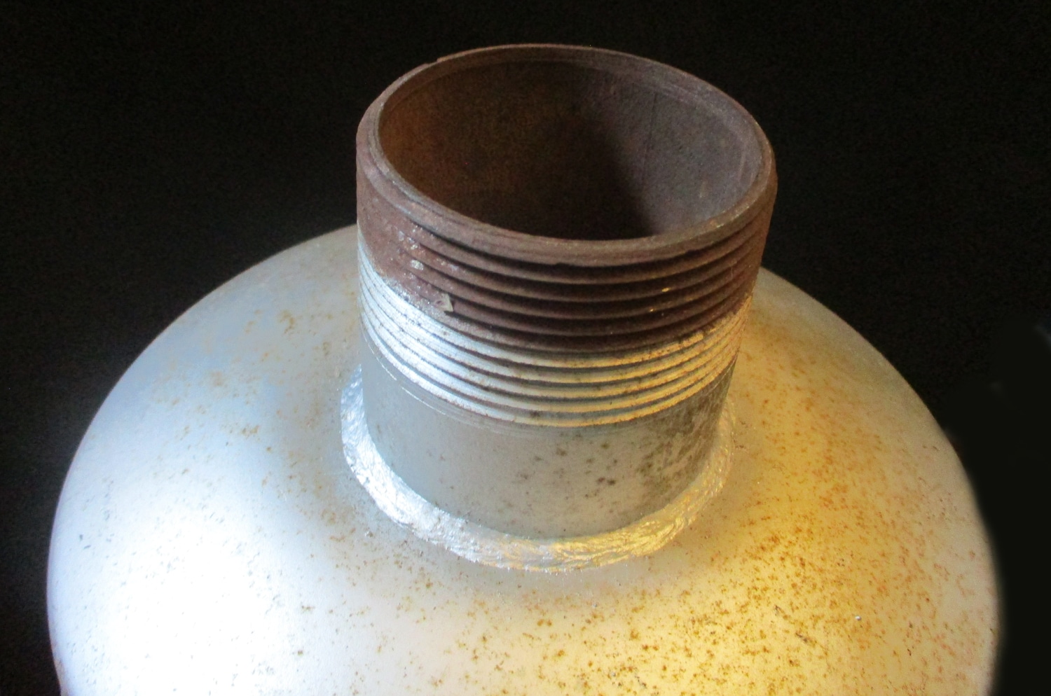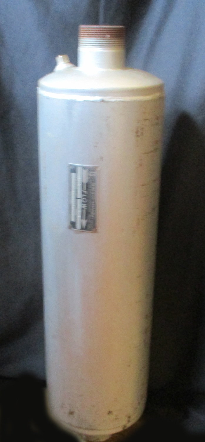 NEW This vacuum pump silencer is made of metal. It stands 32″ tall and has a 27″ outside diameter. The nipples on each end are 2 5/8″ tall with a 2 7/8″ outside diameter, and 2 1/2″ inside diameter. The plug is 9/16″ x 9/16″ square. This silencer is manufactured by Burgess industries. The steel tag reads: catalog number is BMA – 2, Coding: AP – 4 – 81, and the part number is 51 179 – 28.