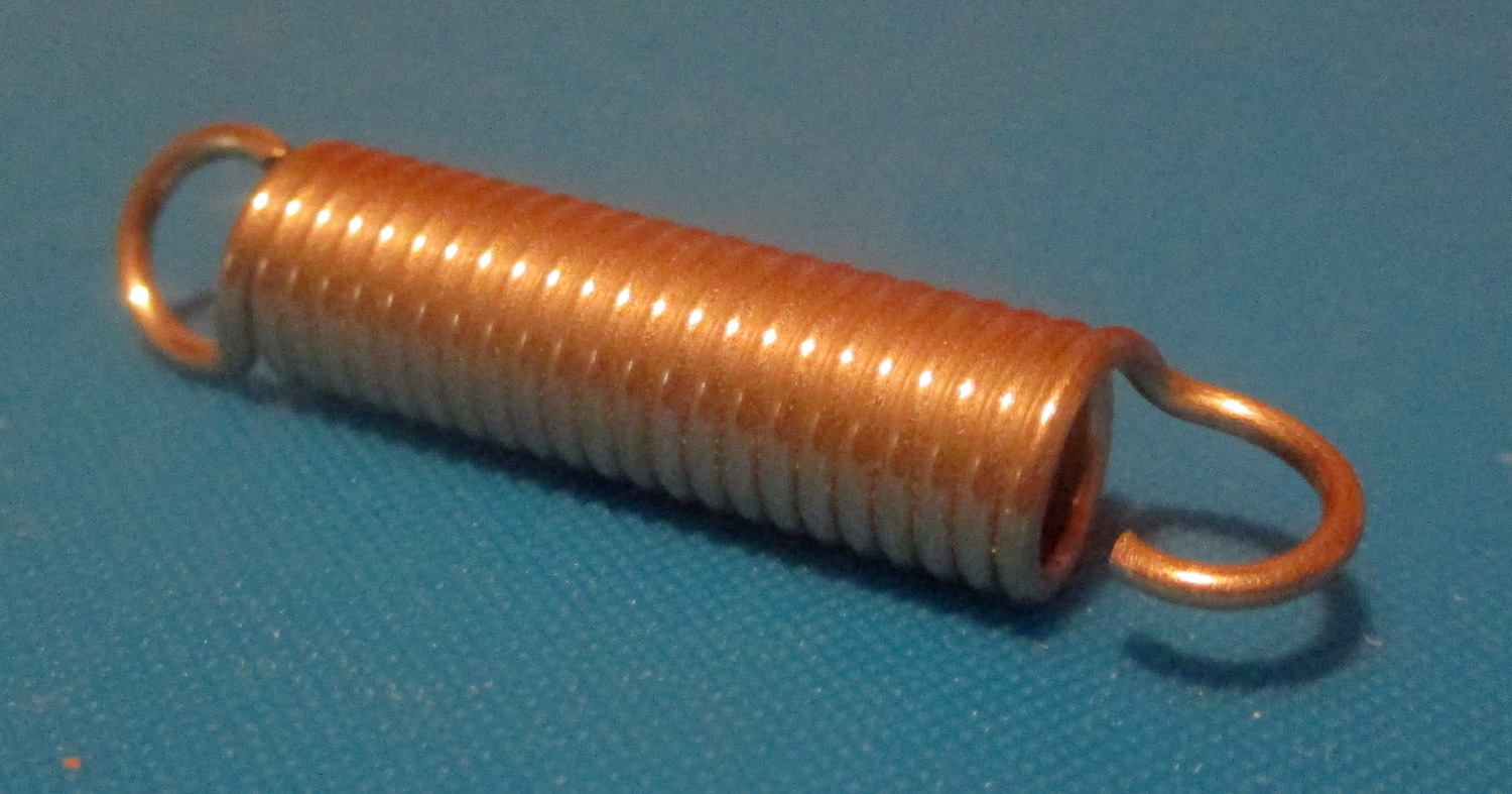 1 5/16″ long overall, and the body alone without the hooks is 13/16″ long. The spring has an outer diameter of 1/4″, and the wire has an outer diameter of 1/64″.