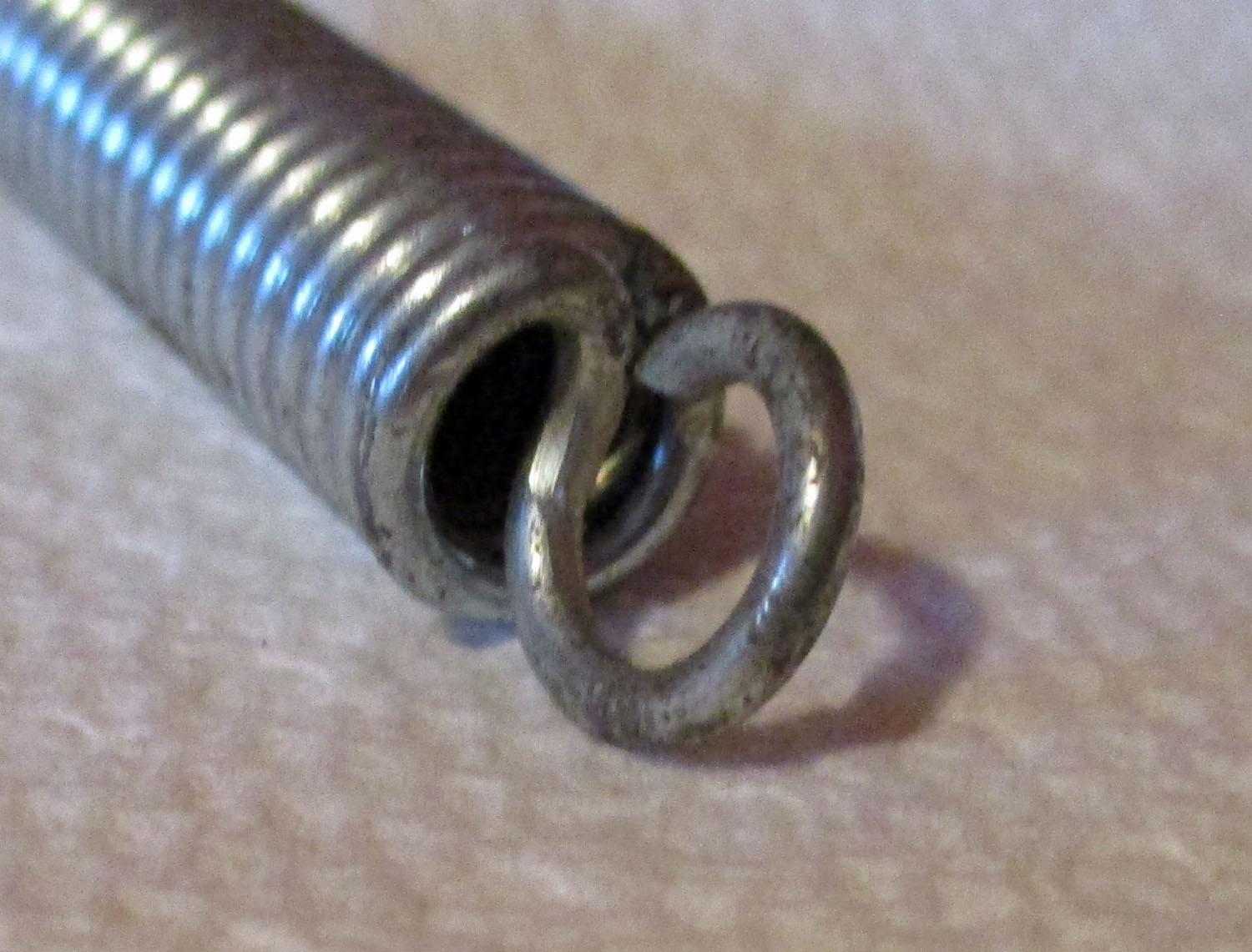 USED This stainless steel spring measures 2 1/32″ long overall and has an outer diameter of 3/8″. The spring alone is 1 5/16″ long, and the wire is 1/16″ thick. The manufacturer and part number are unknown.