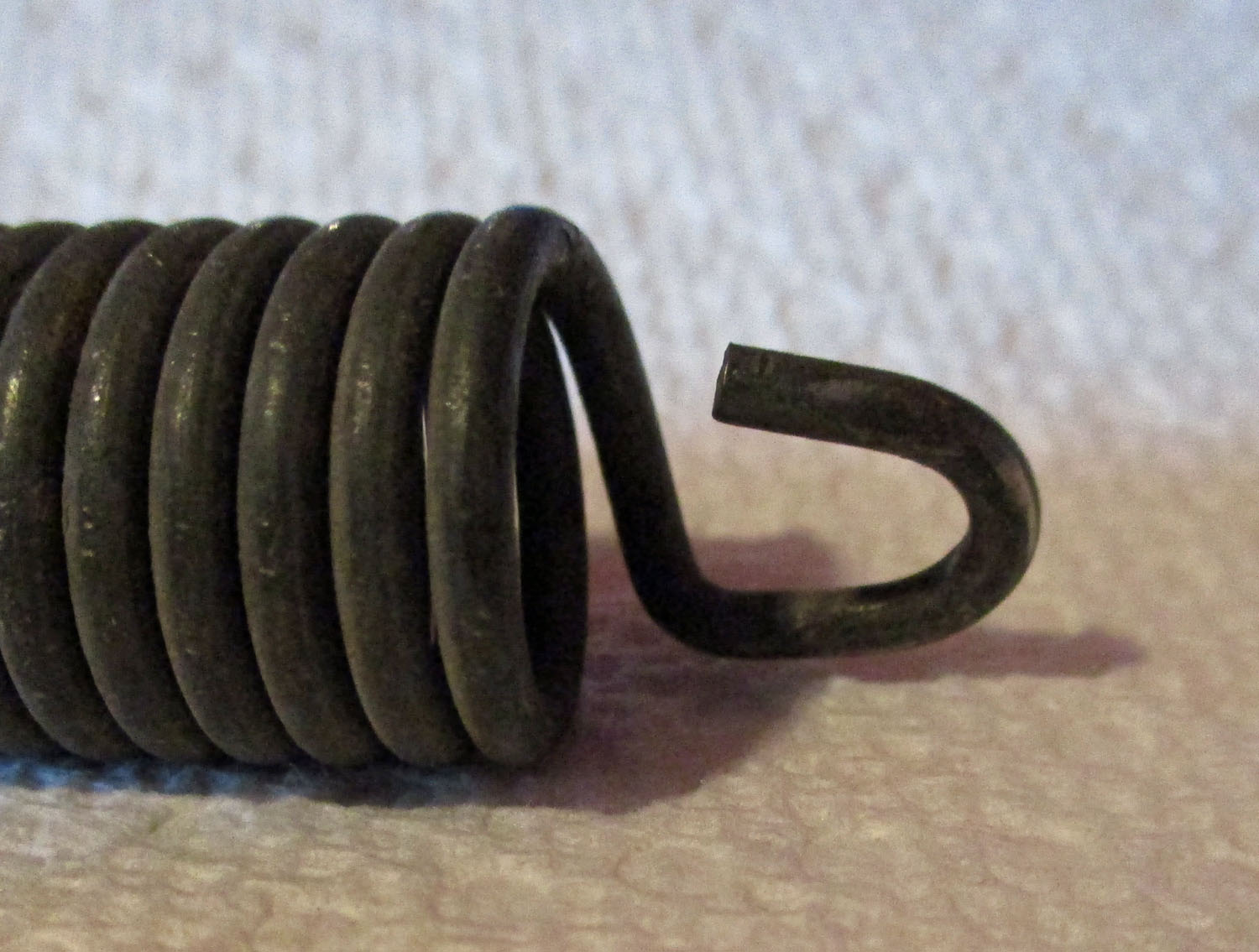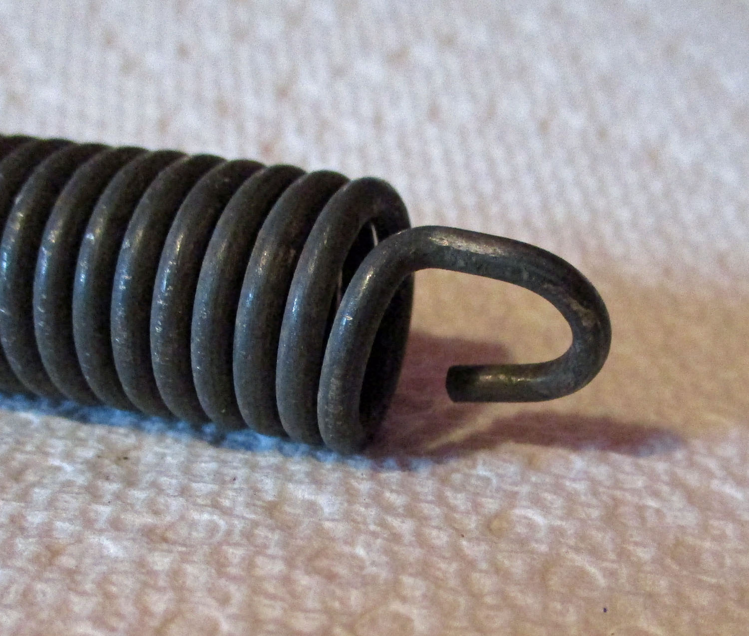 USED This metal spring measures 2 5/8″ long overall and has an outer diameter of 5/8″. The spring alone is 1 17/32″ long, and the wire is 1/16″ thick. The manufacturer and part number are unknown.